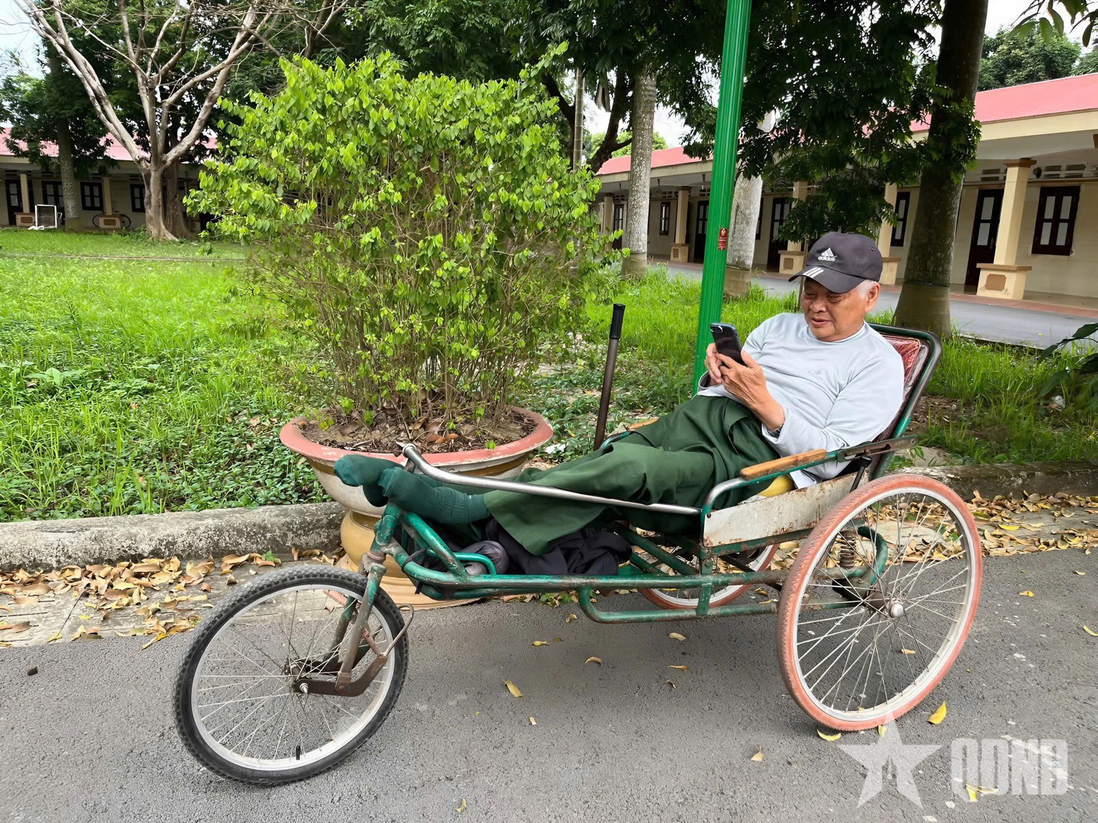 Rời căn phòng của ông Ầm, ông Khương, chúng tôi rảo bước dưới hàng cây cổ thụ của Trung tâm Điều dưỡng thương binh Duy Tiên thì gặp một cựu chiến binh ngồi trên xe lăn đang chăm chú chơi cờ tướng. Đó là ông Phạm Minh Liên (74 tuổi, quê Hà Tĩnh).