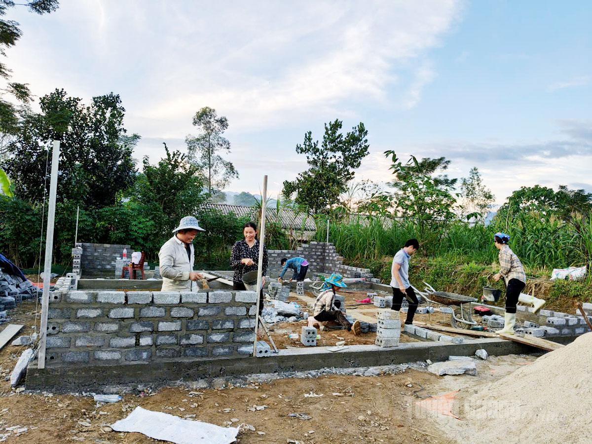 Các lực lượng đoàn thể và người dân địa phương hỗ trợ ngày công lao động giúp các hộ gia đình sớm ổn định cuộc sống.