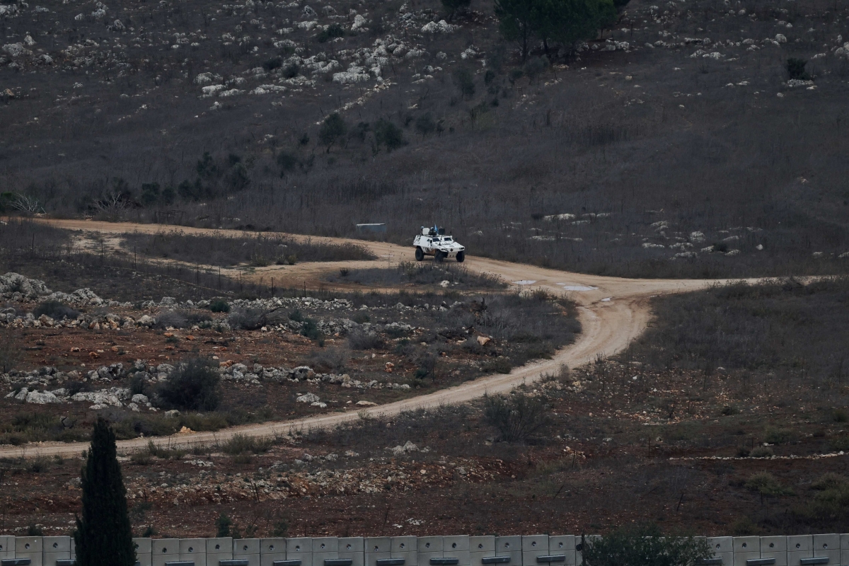 Một chiếc xe của Liên Hợp Quốc chạy gần bức tường bê tông dọc biên giới phía nam của Lebanon. (Ảnh: Reuters)