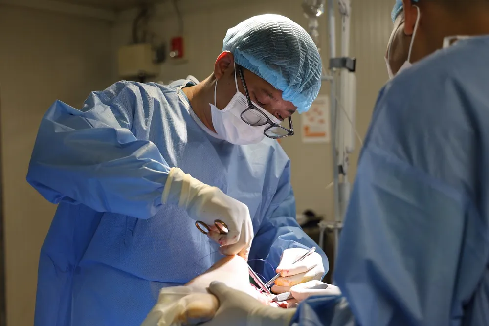 Đây cũng là ca phẫu thuật thứ ba mà bệnh viện triển khai kể từ ngày xuất quân. Bệnh nhân là một sĩ quan chỉ huy cao cấp thuộc đơn vị Mông Cổ, bị đứt hoàn toàn gân Achilles chân trái trong quá trình huấn luyện.