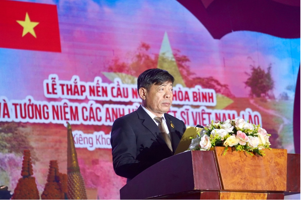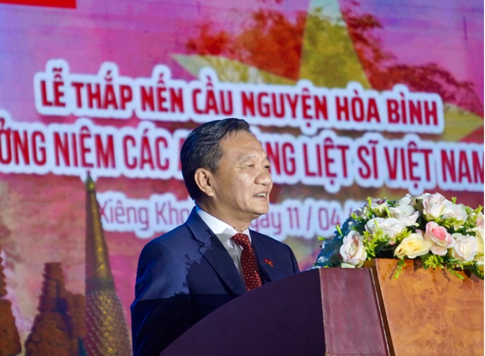 Trong không gian trang nghiêm và tràn đầy xúc cảm, Đại sứ đặc mệnh toàn quyền Việt Nam tại Lào Nguyễn Minh Tâm đã thay mặt Đảng và Nhà nước Việt Nam bày tỏ lòng tri ân sâu sắc trước anh linh các Anh hùng Liệt sĩ hai dân tộc. Ông gửi lời cảm ơn chân thành đến Đảng, Chính phủ và nhân dân Lào, đặc biệt là chính quyền tỉnh Xiêng Khoảng cùng Liên minh Phật giáo Lào, vì sự phối hợp chặt chẽ để tổ chức một buổi lễ quy mô, thấm đẫm tính nhân văn và ý nghĩa lịch sử.