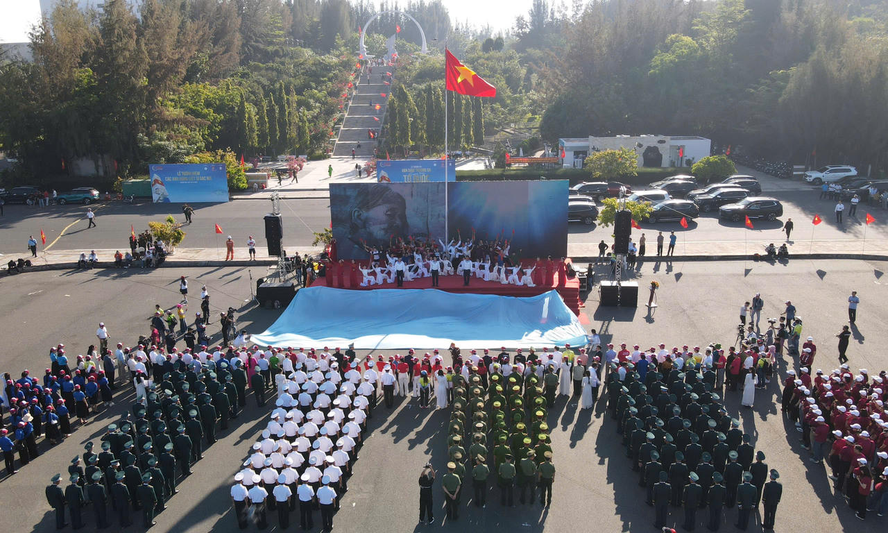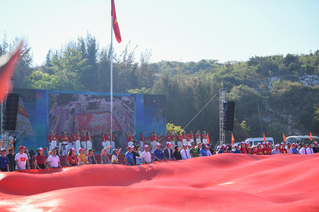 Lá cờ Tổ quốc rộng 2.166 m2 được trải ra tại quảng trường Khu tưởng niệm Chiến sĩ Gạc Ma.