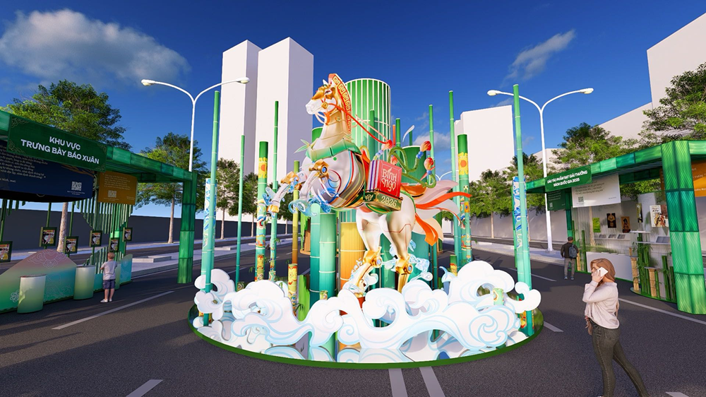 Một trong những điểm nhấn nổi bật của lễ hội là linh vật “Bính Ngọ vươn mình”, được đặt tại khu vực đại cảnh xuân Đường sách Lê Lợi. Linh vật truyền tải thông điệp về sự bền bỉ, ý chí vươn lên và sức mạnh của tri thức trong hành trình bước vào năm mới.