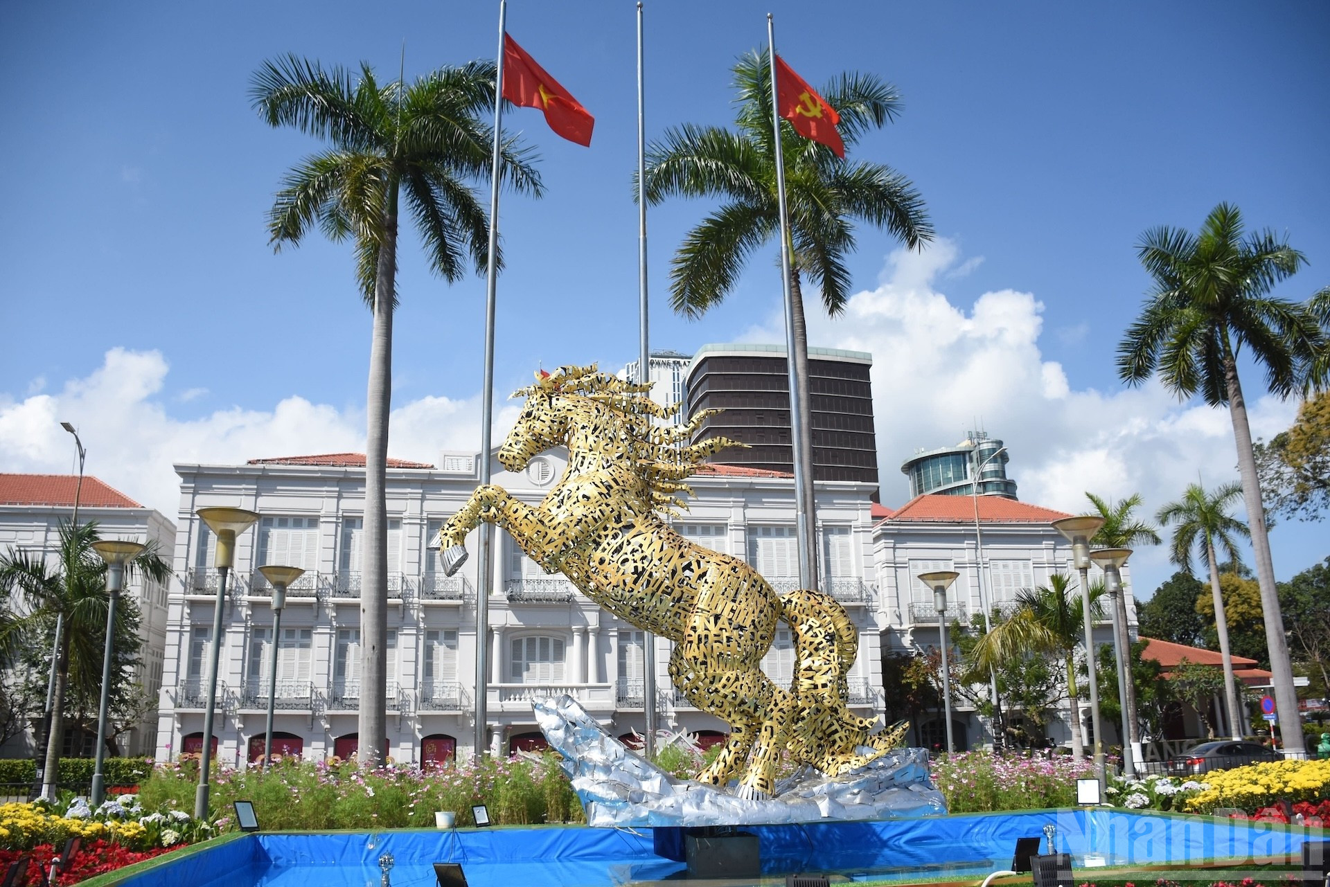 Linh vật “Kim Mã Hợp Nhất với kích thước 3,7m x 3,8m x 1,5m, mang dáng vóc bề thế, cân đối, hài hòa giữa giá trị mỹ thuật và biểu trưng của không gian đô thị hiện đại. Hình tượng ngựa hiện lên mạnh mẽ nhưng uyển chuyển, giàu nhịp điệu và tràn đầy sinh khí, gợi cảm giác năng động, đổi mới và phát triển không ngừng. (Ảnh: ANH ĐÀO)