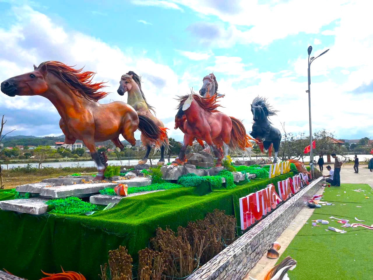 Trước đó, xã Lao Bảo đã trưng bày cụm linh vật ngựa với tám con ngựa có chiều cao từ 2 đến 3,5 m.