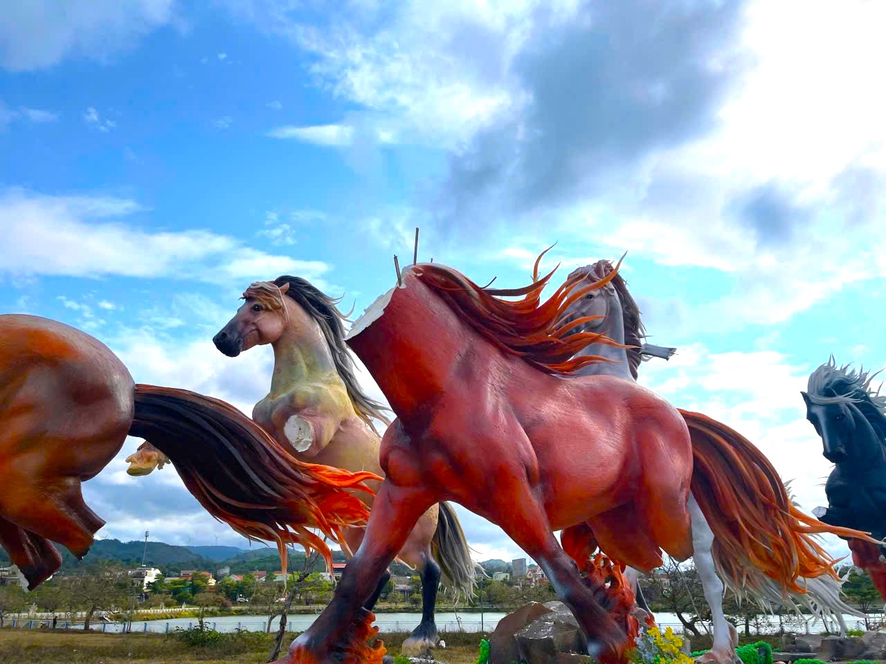 Các linh vật ngựa bị phá hoại mất phần đầu, chân.