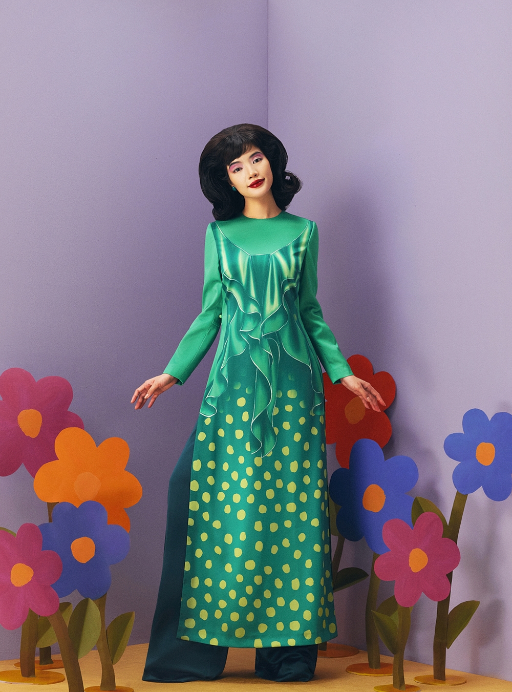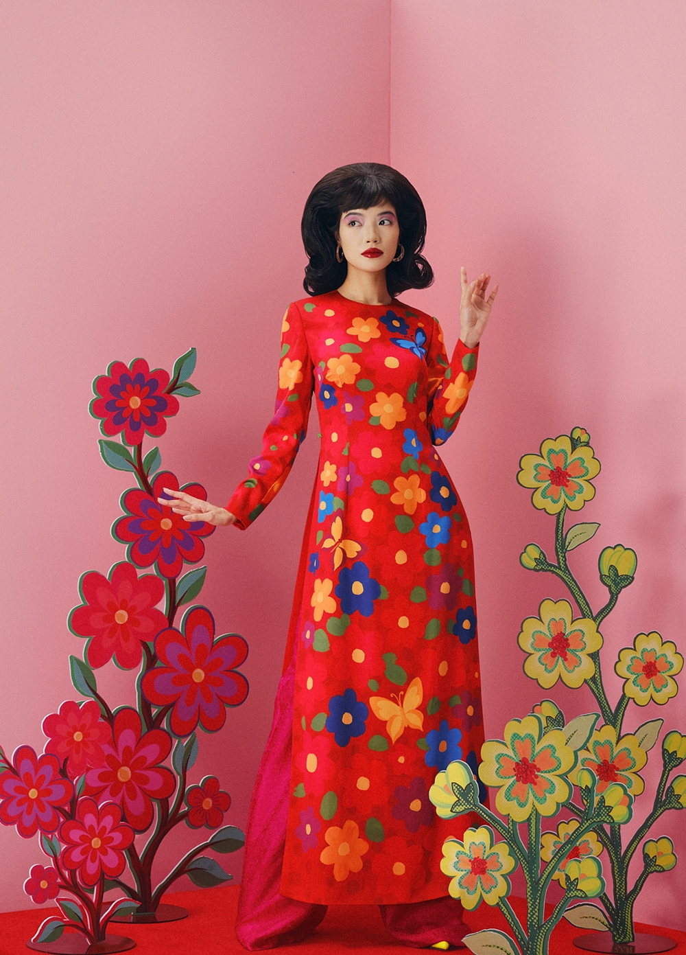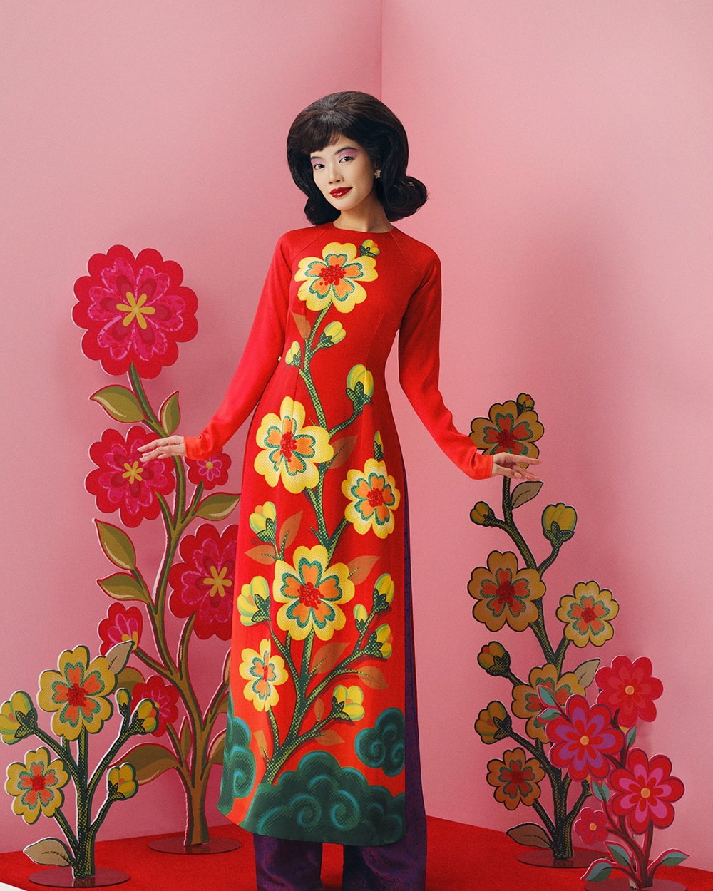 Điều được nhấn mạnh trong tinh thần bộ áo dài Tết lần này là quan niệm: Tết không nhất thiết phải diễn giải bằng những biểu tượng lặp lại. Tết có thể được kể bằng cảm xúc, màu sắc, ký ức thị giác và một ngôn ngữ thời trang đủ chín để không cần giải thích quá nhiều.