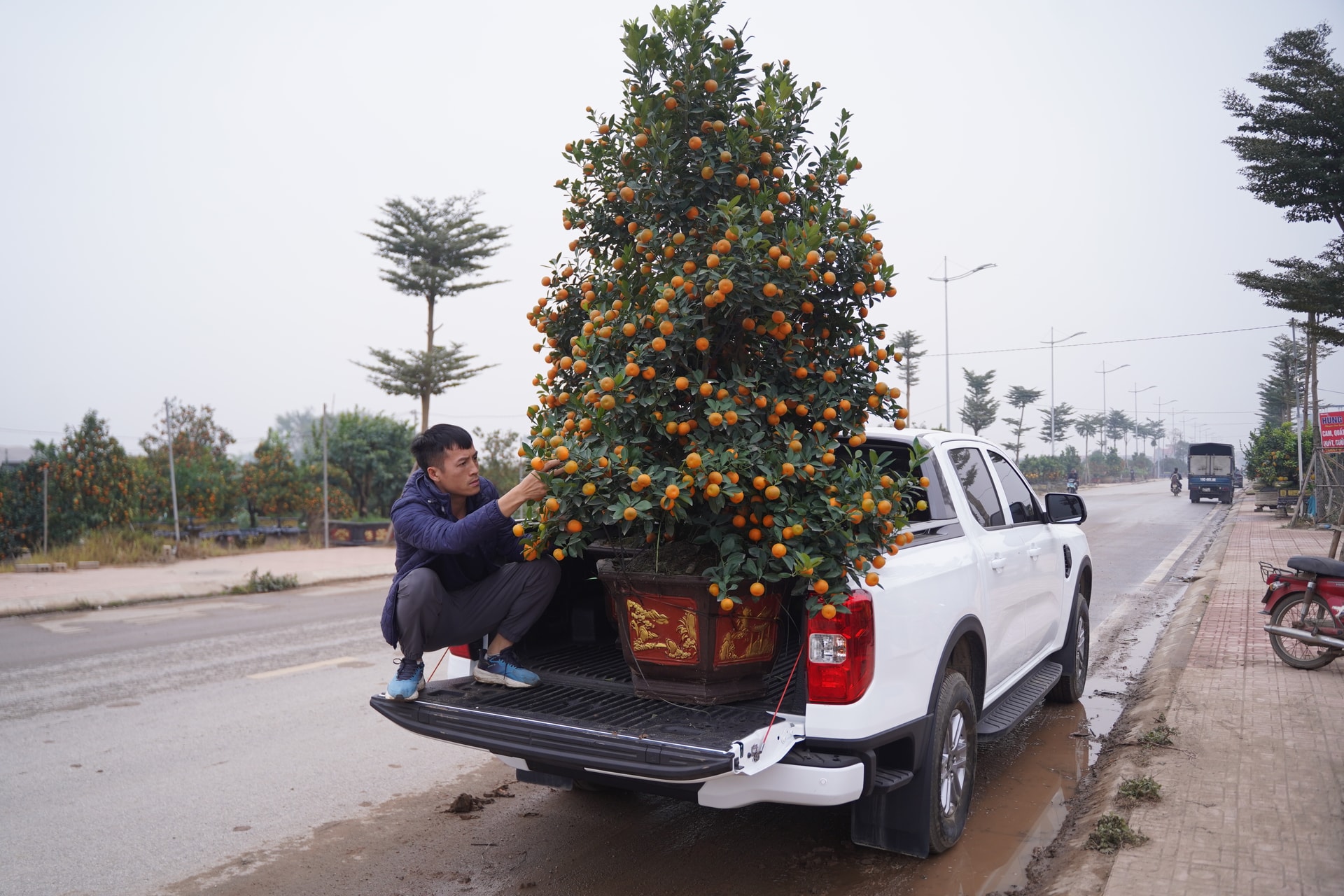 Năm nay, mỗi cây quất cổ thụ tại Văn Giang có giá bán từ 35-45 triệu đồng. Do trọng lượng lớn, chi phí vận chuyển mỗi cây có thể lên tới khoảng 20 triệu đồng.