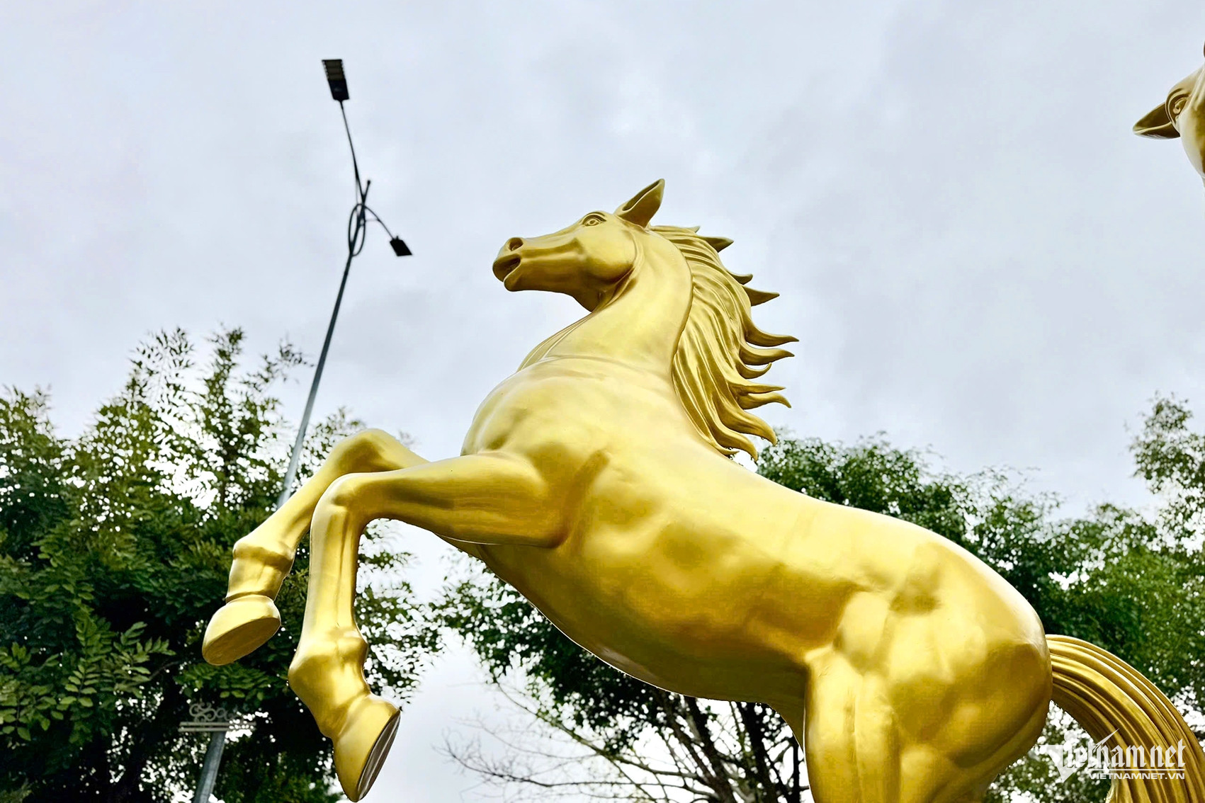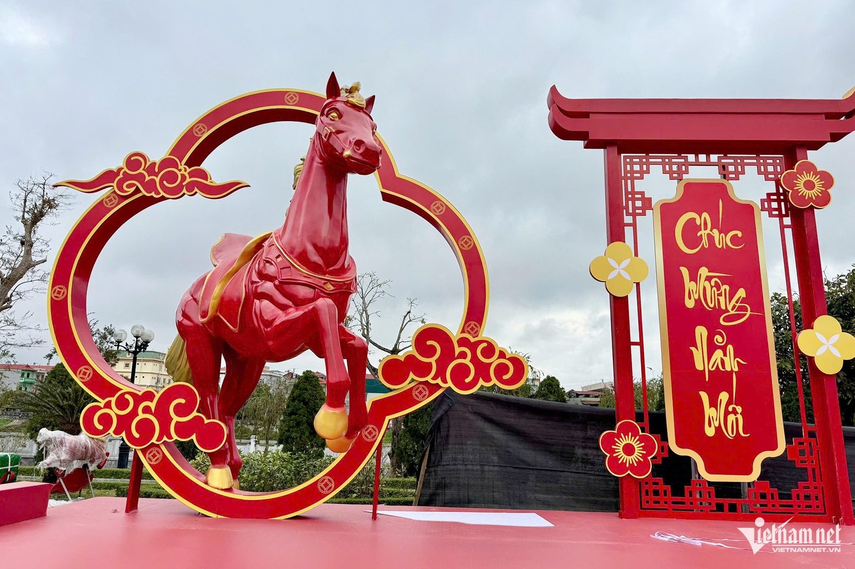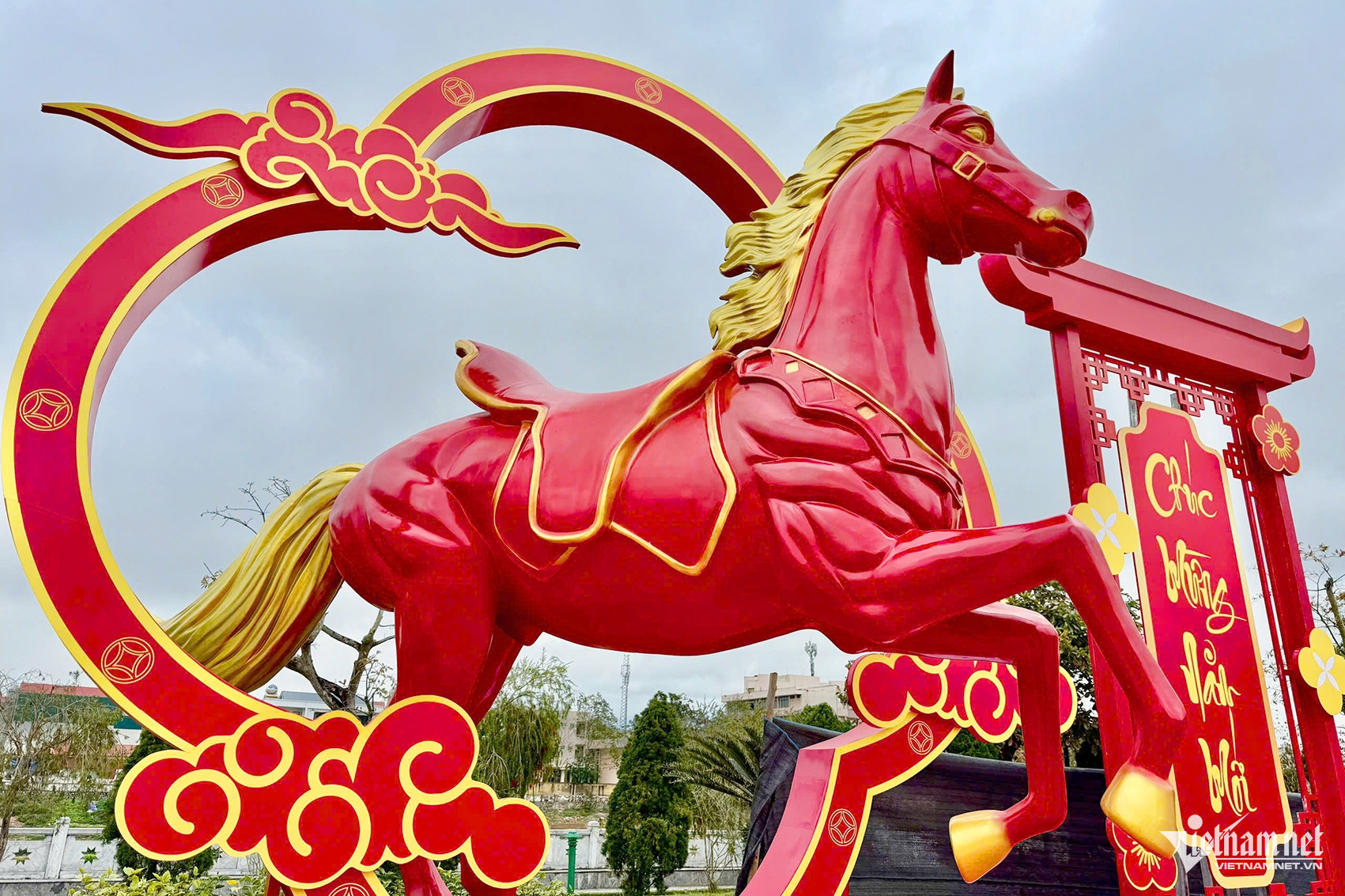 Theo đơn vị thi công, các linh vật ngựa được làm từ nhựa composite nhằm đảm bảo độ bền; lớp sơn vàng và đỏ vừa tăng tính thẩm mỹ, vừa giúp công trình chịu được thời tiết mưa phùn.