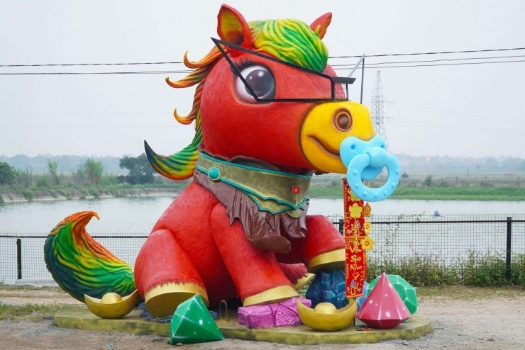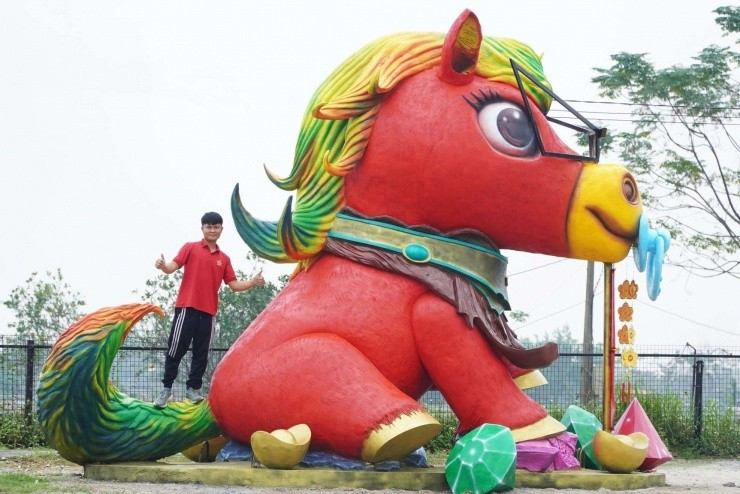 Trái ngược với vẻ uy nghiêm ở Đà Nẵng, linh vật ngựa tại Bắc Ninh của anh Bùi Văn Quân lại mang đến một làn gió hài hước và gần gũi. Tác phẩm mang tên "Ngựa vui vẻ" này đang gây sốt bởi tạo hình không giống ai.