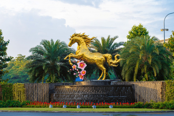 Linh vật Ngựa Vàng tại sân bay Đà Nẵng là điểm trang trí linh vật chủ đề Bính Ngọ 2026 đầu tiên trên địa bàn thành phố, mang đến không khí Tết ấm áp cùng lời chúc bình an đến hành khách.