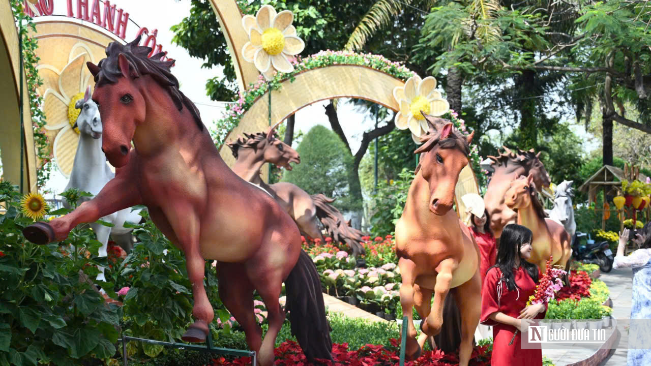 Những ngày cận Tết, khi nhịp sống hối hả của những phiên chợ cuối năm hòa cùng không khí rộn ràng đón xuân, khu vực đường hoa Nguyễn Văn Trị ven sông Đồng Nai thuộc phường Trấn Biên tỉnh Đồng Nai bỗng trở thành điểm đến sôi động hơn thường lệ. Nổi bật giữa không gian phố phường là linh vật ngựa được thiết kế công phu, đặt trang trọng giữa quảng trường, xung quanh là thảm hoa tươi, cờ phướn và tiểu cảnh xuân rực rỡ sắc màu.