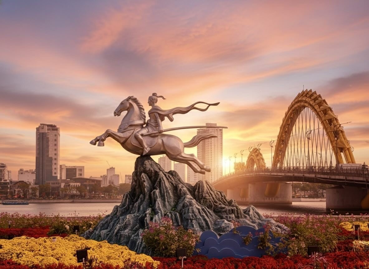 Trong không khí rộn ràng chuẩn bị đón Tết Bính Ngọ 2026, Đà Nẵng đã cho ra mắt cụm linh vật ngựa với nhiều phong cách khác nhau. Tuy nhiên, chiếm trọn cảm tình của người dân và du khách chính là tượng Thánh Gióng cưỡi ngựa được đặt tại vị trí đắc địa gần cầu Rồng.
