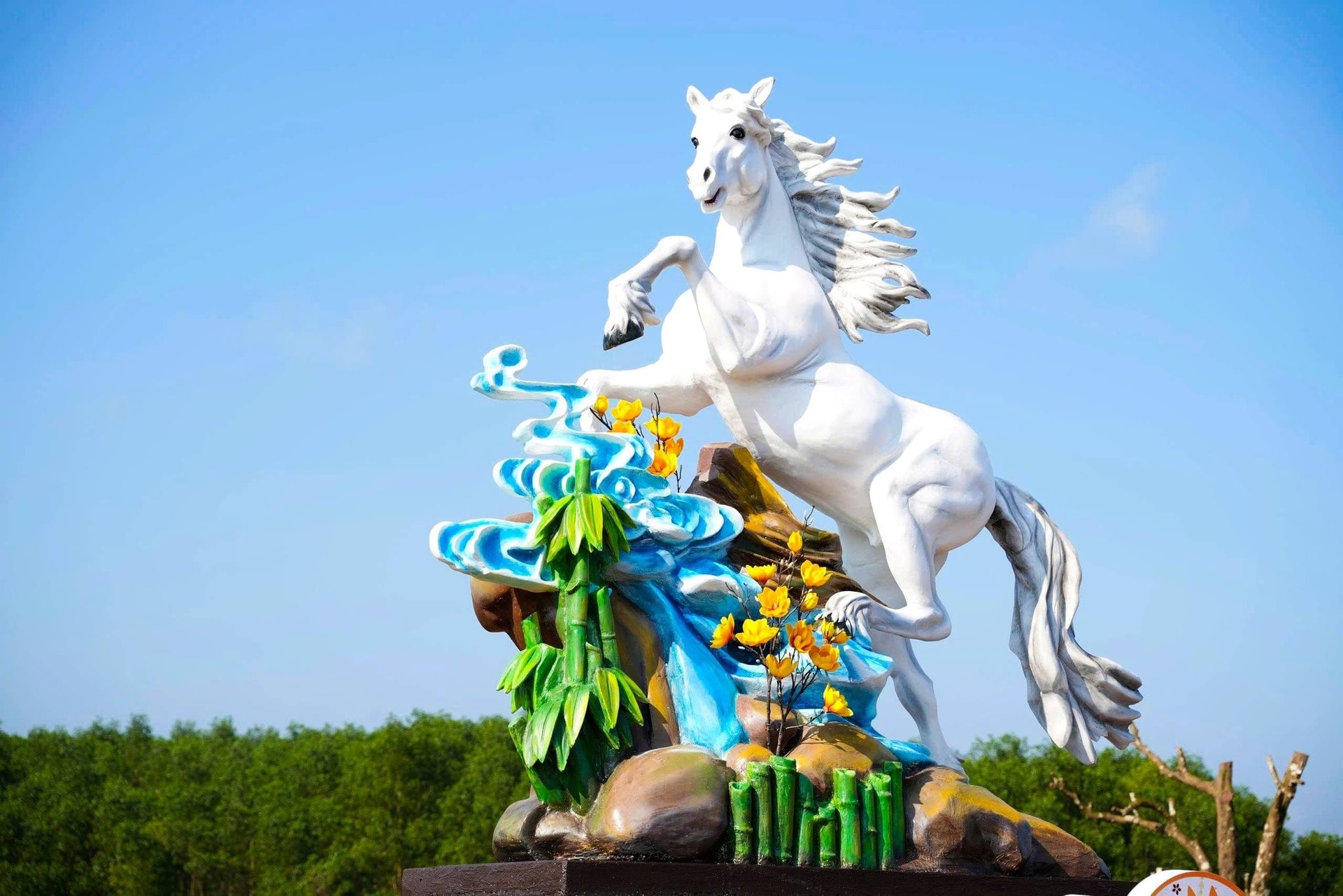 Linh vật Ngựa trắng Xuân Bính Ngọ 2026 rực sắc trên đồi Chuông Gió