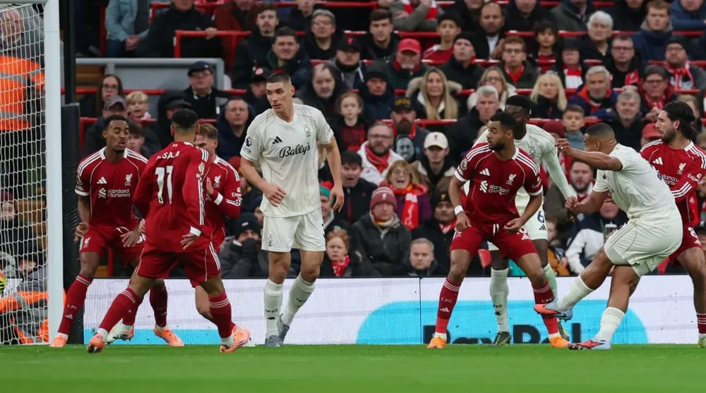 Nhận 2 bàn thua bất ngờ, Liverpool tổ chức đội hình tấn công nhưng trước hàng thủ thi đấu kỷ luật của Nottingham, các chân sút của The Kop bất lực tìm ra khoảng trống.