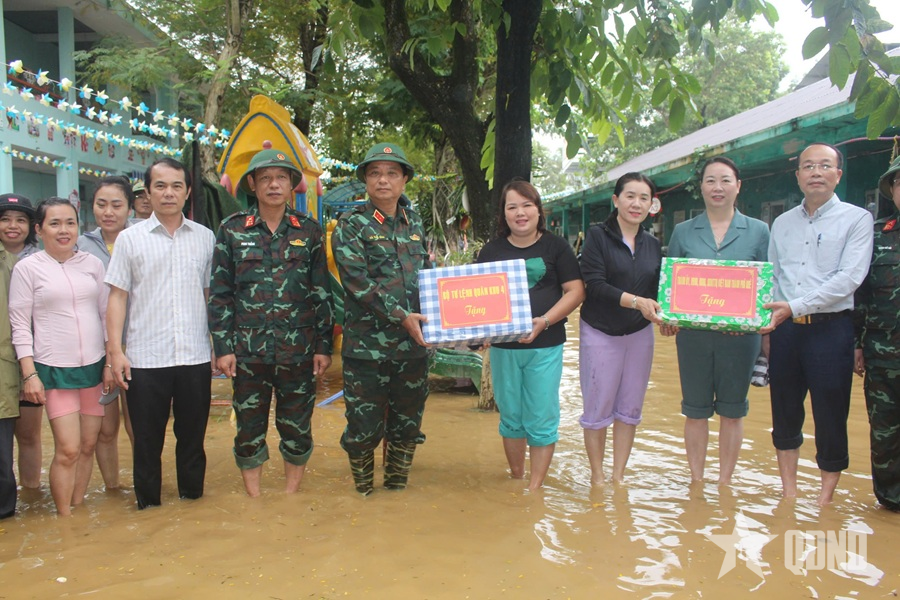 Trung tướng Hà Thọ Bình, Tư lệnh Quân khu 4 và lãnh đạo TP Huế trao quà hỗ trợ Trường Mầm non Tây Lộc, phường Phú Xuân.