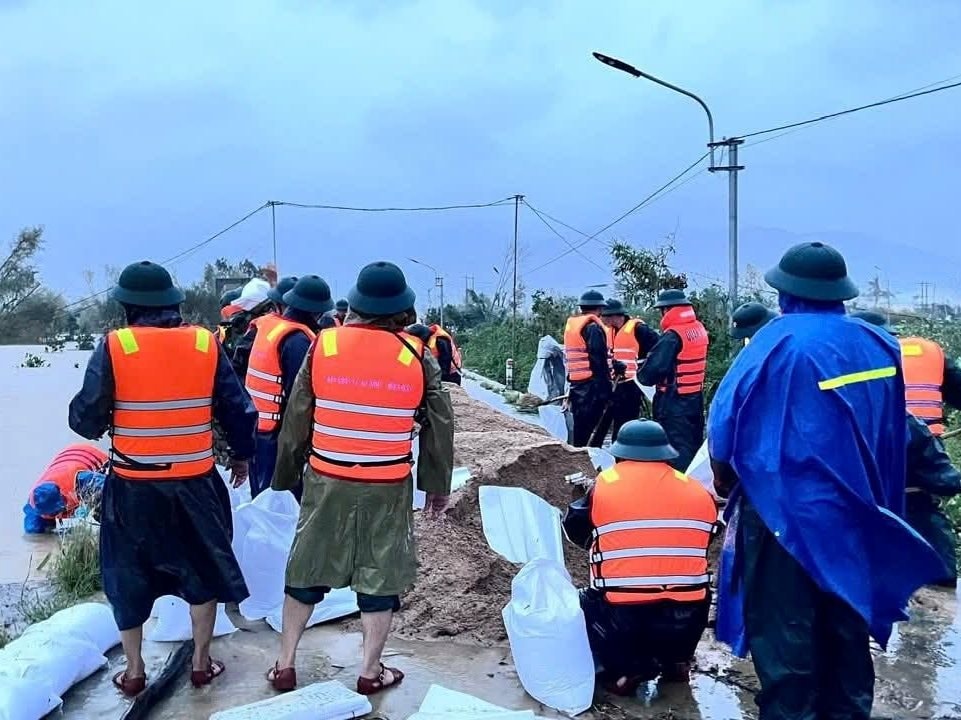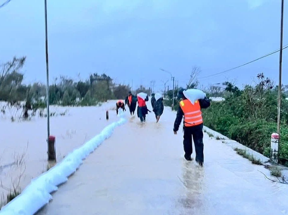 Tại đây, các lực lượng tập trung đắp đập tạm, gia cố bờ bao bằng bao tải cát nhằm tạo tuyến đê chắn lũ, chuyển hướng dòng chảy, không để nước từ các sông suối tràn qua đường giao thông gây chia cắt các tuyến huyết mạch. Biện pháp này cũng góp phần bảo vệ trực tiếp nhà cửa và tài sản của người dân đang nằm trong khu vực nguy cơ cao.
