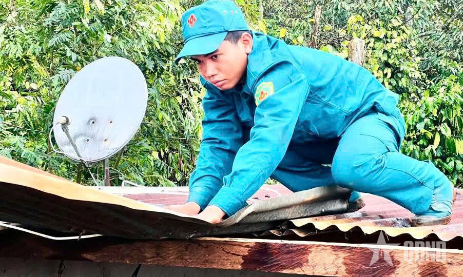 Tại các khu vực nhà dân bị tốc mái, hư hỏng, Ban CHQS các xã, phường đã huy động lực lượng dân quân mang theo dụng cụ, vật liệu hỗ trợ người dân thu dọn, gia cố lại nhà cửa, lợp lại mái tôn, che chắn tạm thời, giúp bà con ổn định nơi ở trước mắt.
