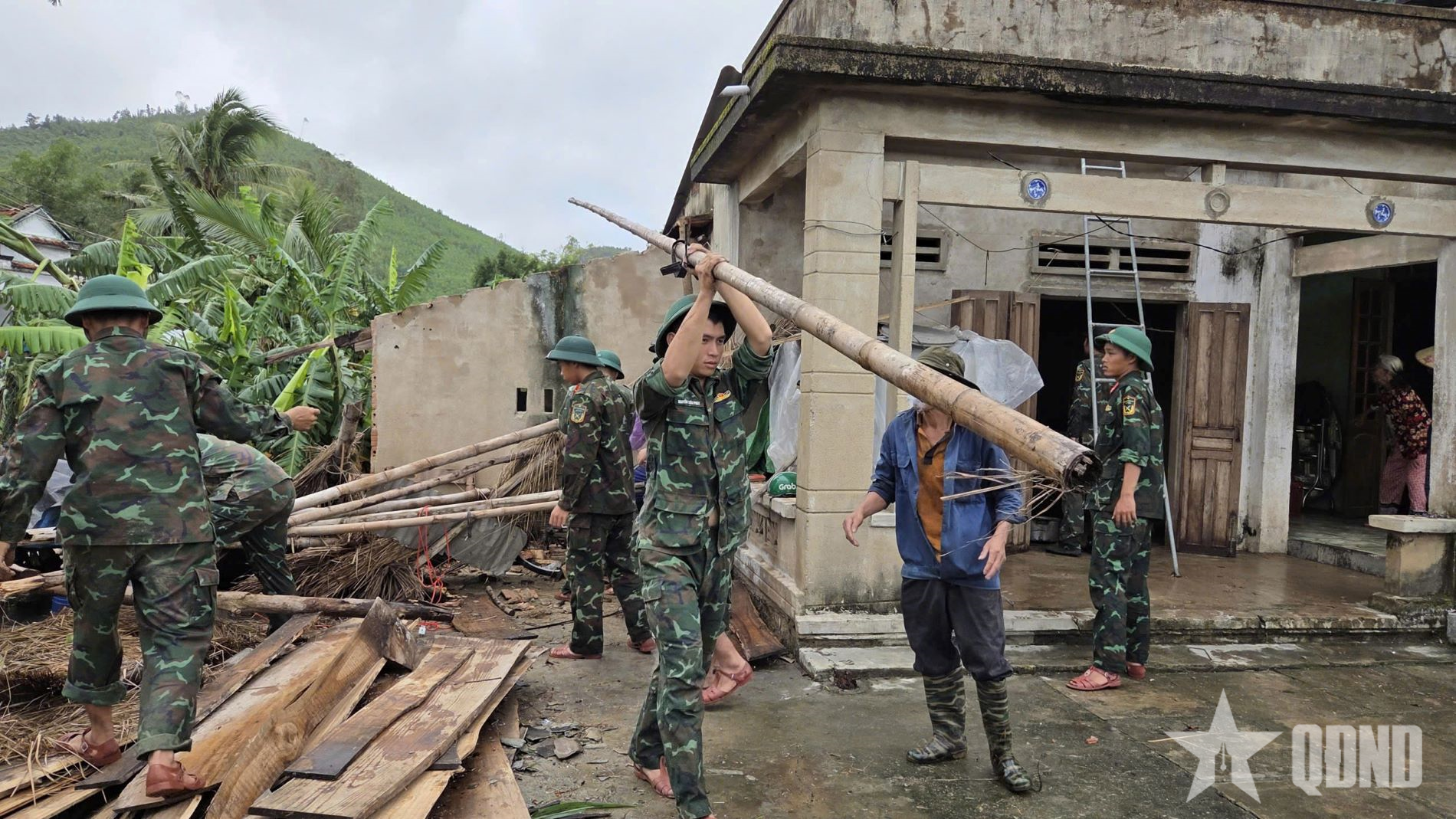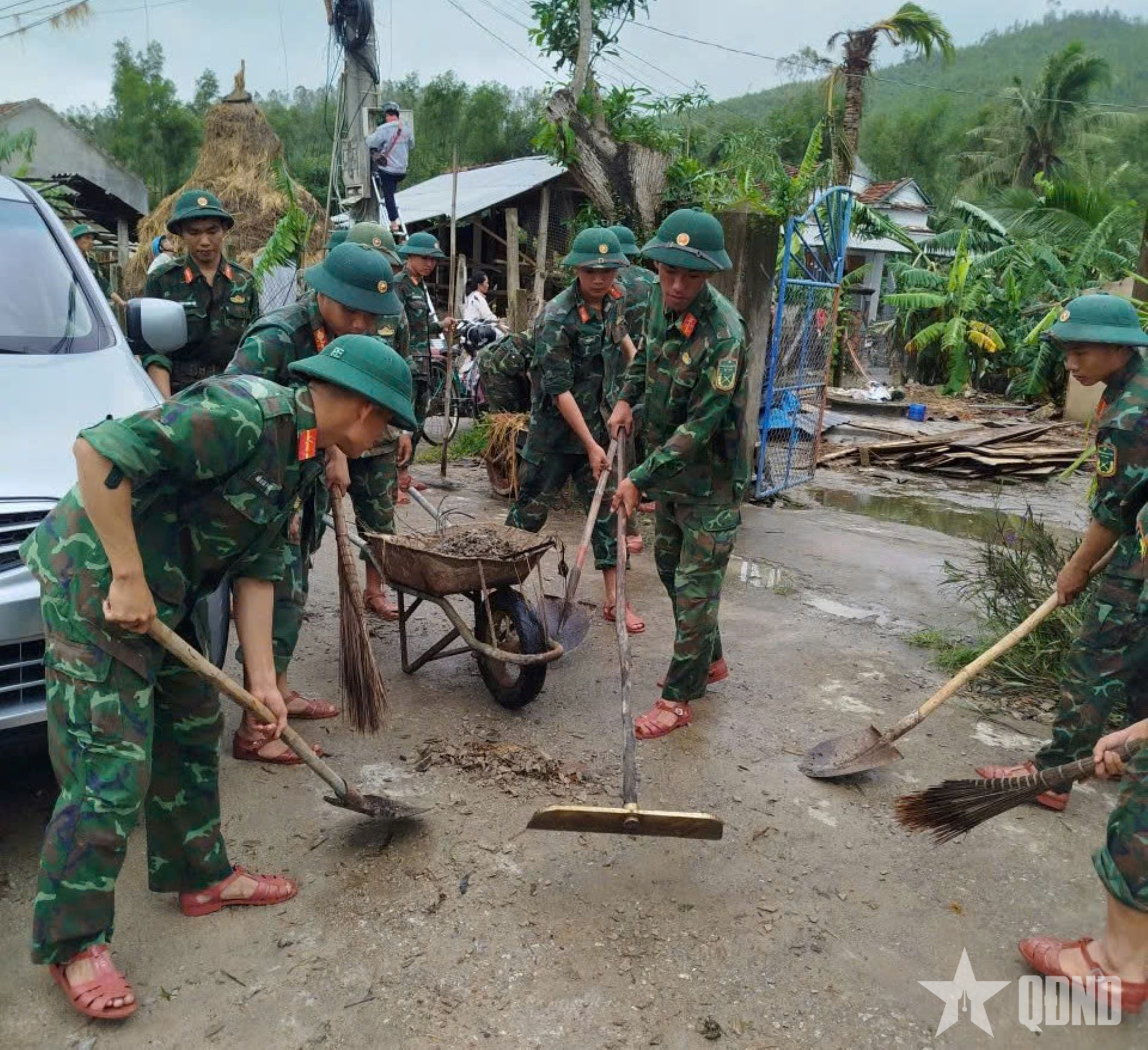 Ngay sau khi xảy ra thiên tai, Trung đoàn 887 (Bộ CHQS tỉnh Quảng Ngãi) đã huy động hơn 40 cán bộ, chiến sĩ đến hiện trường phối hợp cùng dân quân xã Nguyễn Nghiêm, công an và lực lượng địa phương giúp dân thu dọn hiện trường, lợp lại mái nhà.