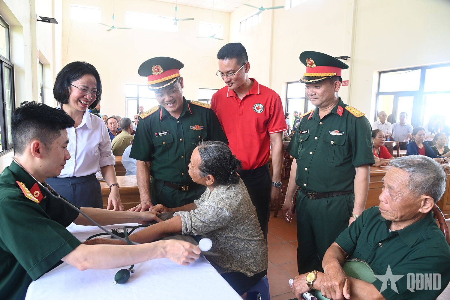 Đại tá Nguyễn Đình Khiêm, Phó chính ủy Bộ CHQS tỉnh cùng lãnh đạo Bộ CHQS tỉnh và Hội Chữ thập đỏ tỉnh thăm hỏi, động viên các đối tượng chính sách tham gia khám bệnh miễn phí, tư vấn sức khỏe tại phường Hoành Bồ do Bộ CHQS tỉnh phối hợp với Hội Chữ thập đỏ tỉnh Quảng Ninh tổ chức.