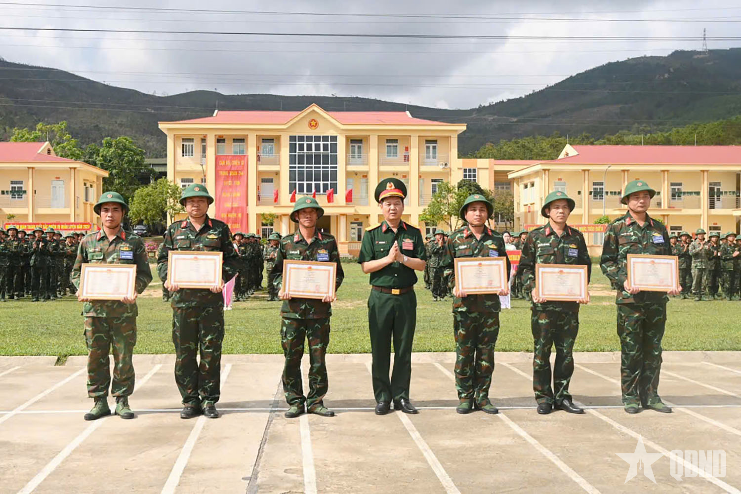 Trung đoàn 244, Bộ CHQS tỉnh Quảng Ninh đoạt giải nhất Hội thao huấn luyện chiến sĩ mới do Quân khu 3 tổ chức. (Trong ảnh: Trung tá Đinh Kiên (thứ hai, từ trái sang), Trung đoàn trưởng Trung đoàn 244 nhận khen thưởng).