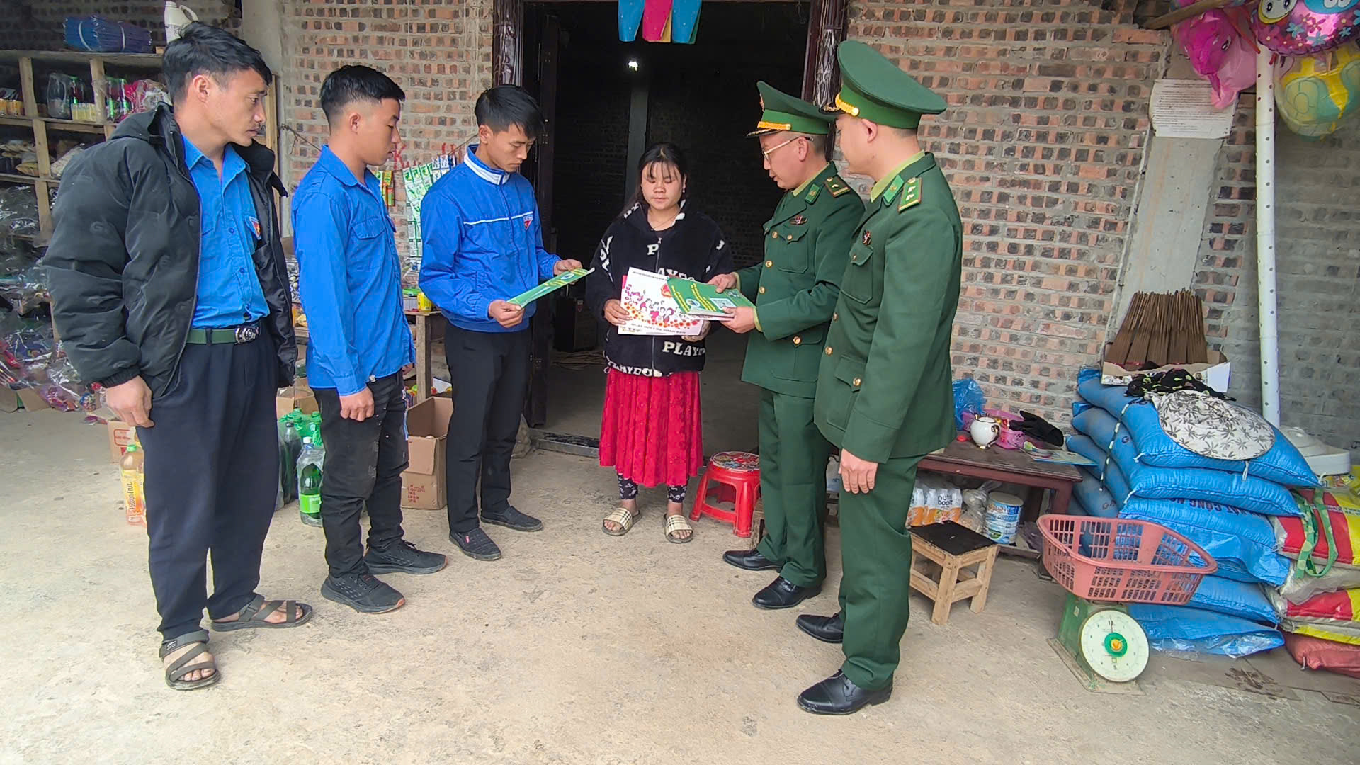 Cán bộ Đồn Biên phòng Lũng Cú, Bộ đội Biên phòng tỉnh Tuyên Quang tuyên truyền về cuộc bầu cử đến từng hộ gia đình trên địa bàn. Ảnh: XUÂN HƯNG