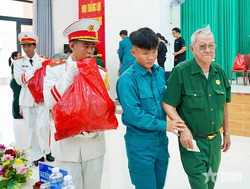 Hỗ trợ các cựu chiến binh tham gia chương trình gặp mặt tặng quà Tết.