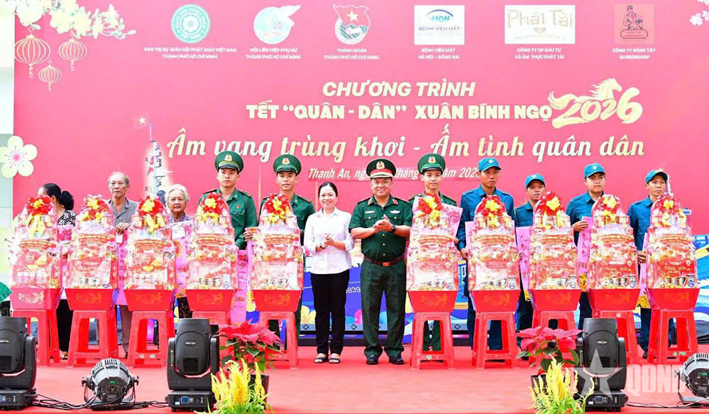 Hoạt động “Tết quân dân” được chuẩn bị công phu, bài bản, trở thành điểm nhấn nổi bật trong công tác chuẩn bị đón xuân năm nay. LLVT Thành phố phối hợp tổ chức Chương trình “Tết quân dân” tại xã Thạnh An, xã Cần Giờ; chương trình “Xuân Biên phòng ấm lòng dân bản” tại các xã Phước Hải và An Thới Đông với tổng kinh phí 5 tỷ đồng, triển khai nhiều nội dung thiết thực như: Sửa chữa nhà ở, hỗ trợ phương tiện sinh kế, trao xe đạp cho học sinh, tổ chức gian hàng 0 đồng, tặng công trình thể dục thể thao, khám bệnh, cấp thuốc miễn phí cho hàng trăm lượt người dân. Các chương trình không chỉ góp phần chăm lo đời sống vật chất cho nhân dân vùng ven, khu vực đặc thù, mà còn bồi đắp niềm tin, thắt chặt mối quan hệ đoàn kết quân dân trên địa bàn Thành phố.