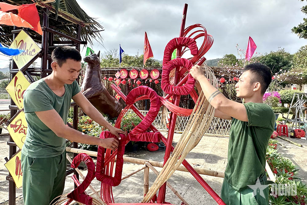Chiến sĩ Ban chỉ huy Phòng thủ khu vực 6 - Đặc khu Côn Đảo trang trí Tết.