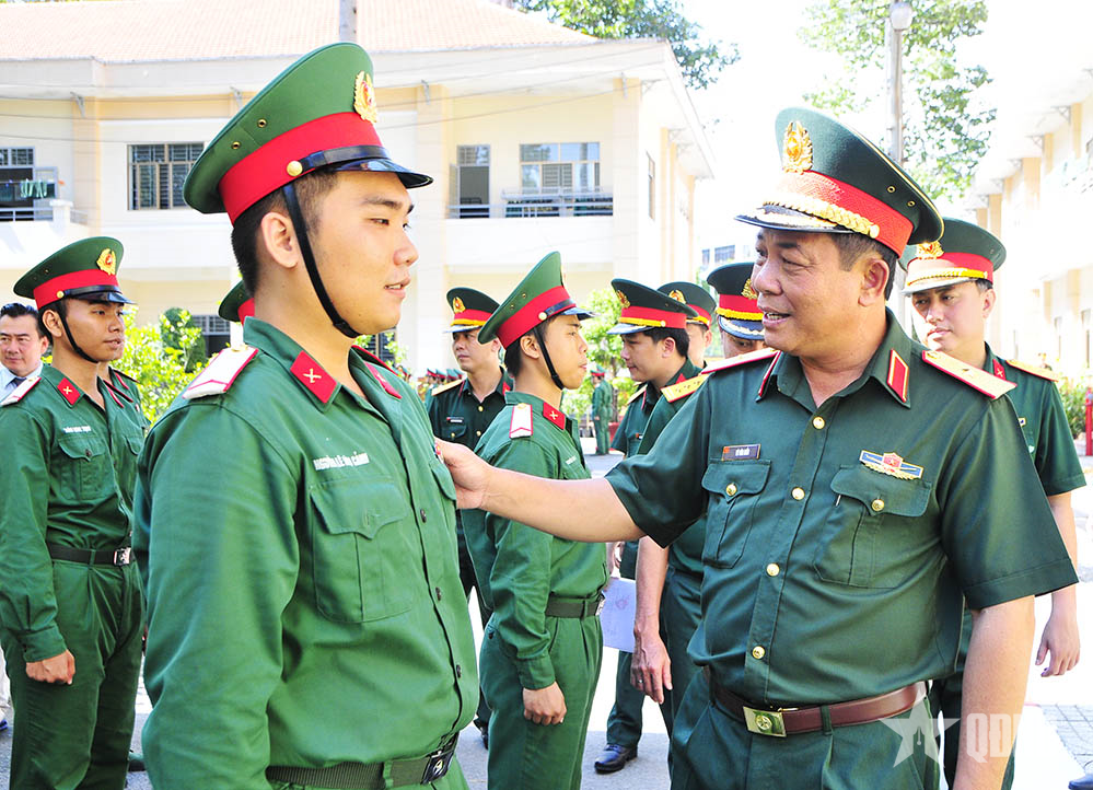 Thiếu tướng Vũ Văn Điền, Tư lệnh Bộ tư lệnh TP Hồ Chí Minh kiểm tra chiến sĩ thực hiện nhiệm vụ.