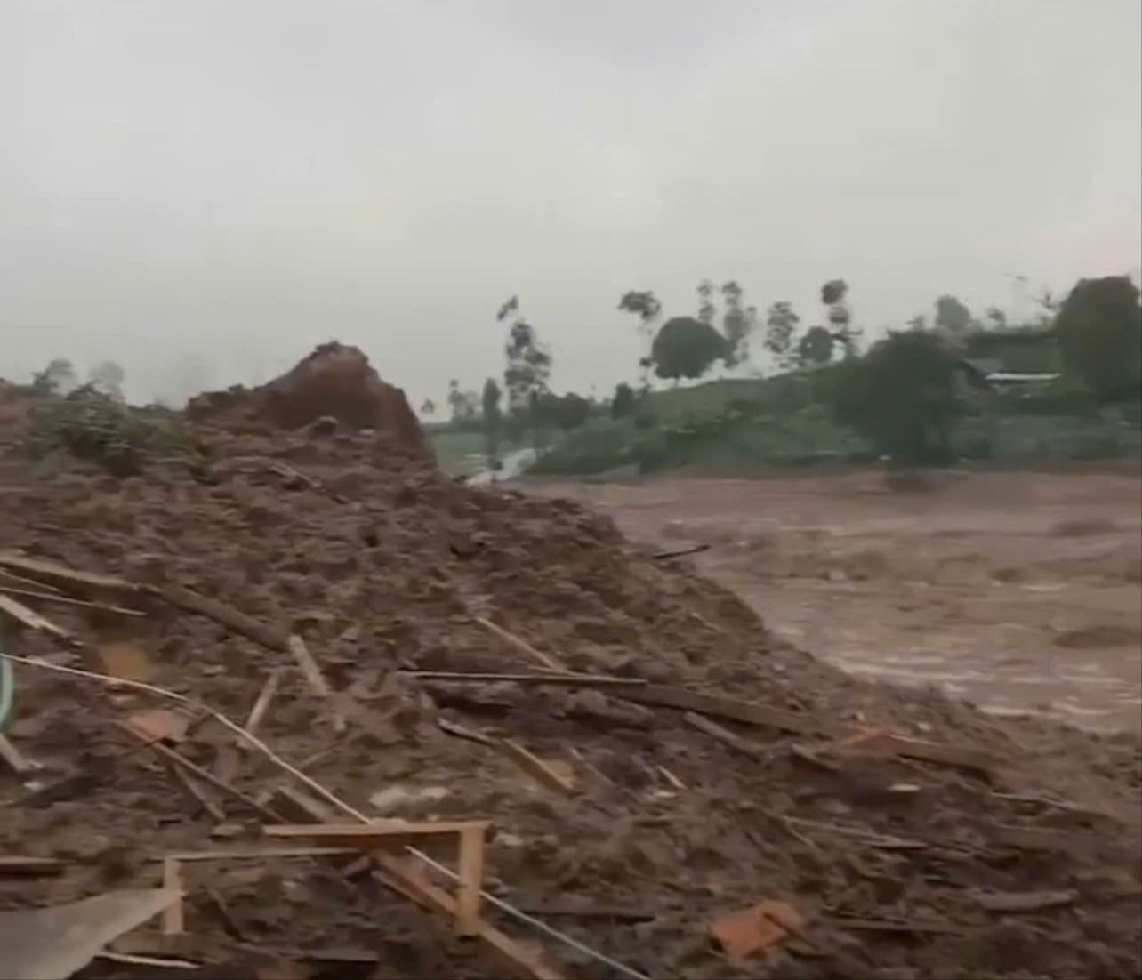 Hàng chục ngôi nhà đã bị đất đá vùi lấp, gây thiệt hại nghiêm trọng cho các khu dân cư nằm gần khu vực xảy ra sạt lở.