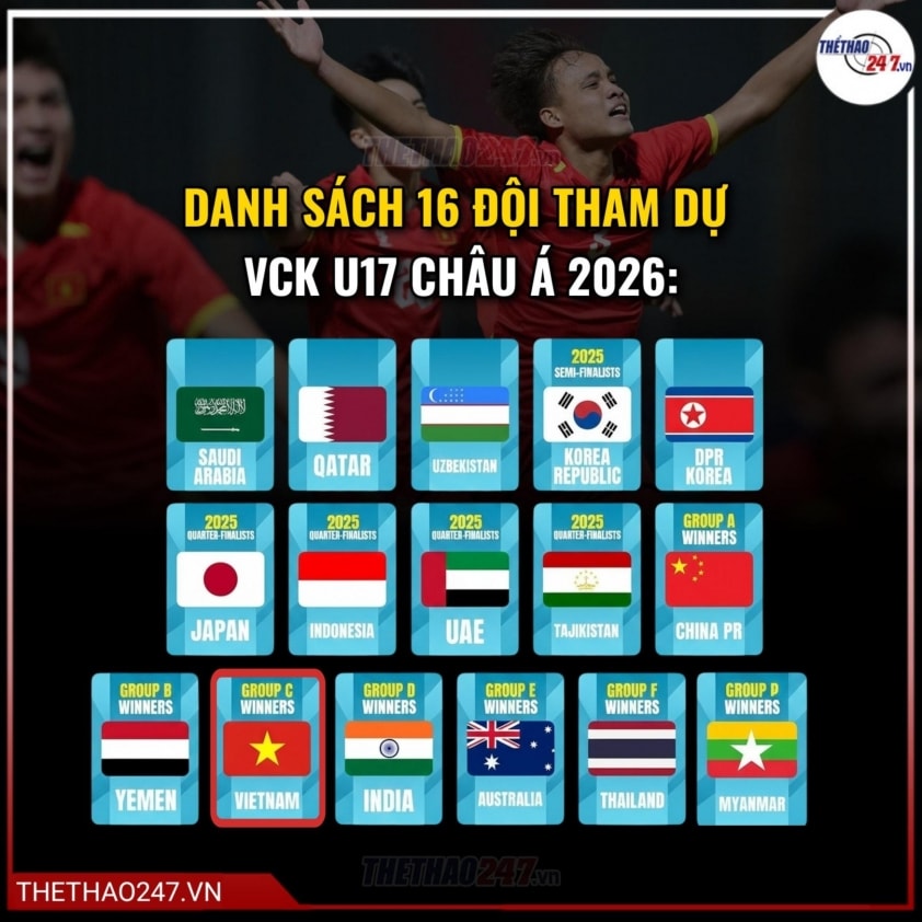 Danh sách 16 đội tuyển giành vé tham dự VCK U17 châu Á 2026