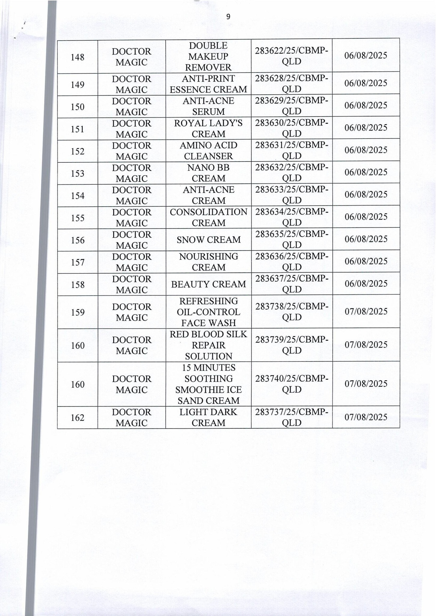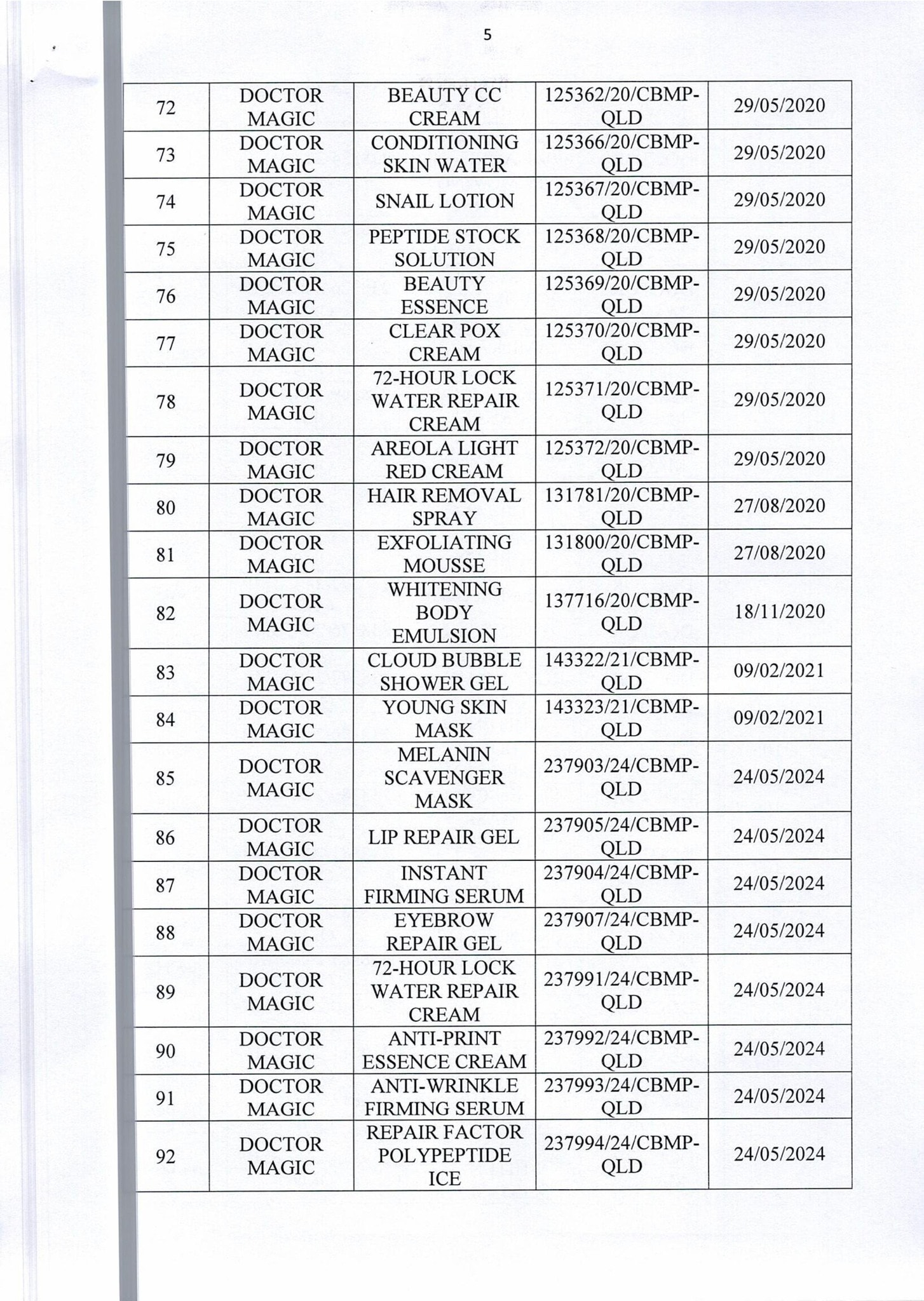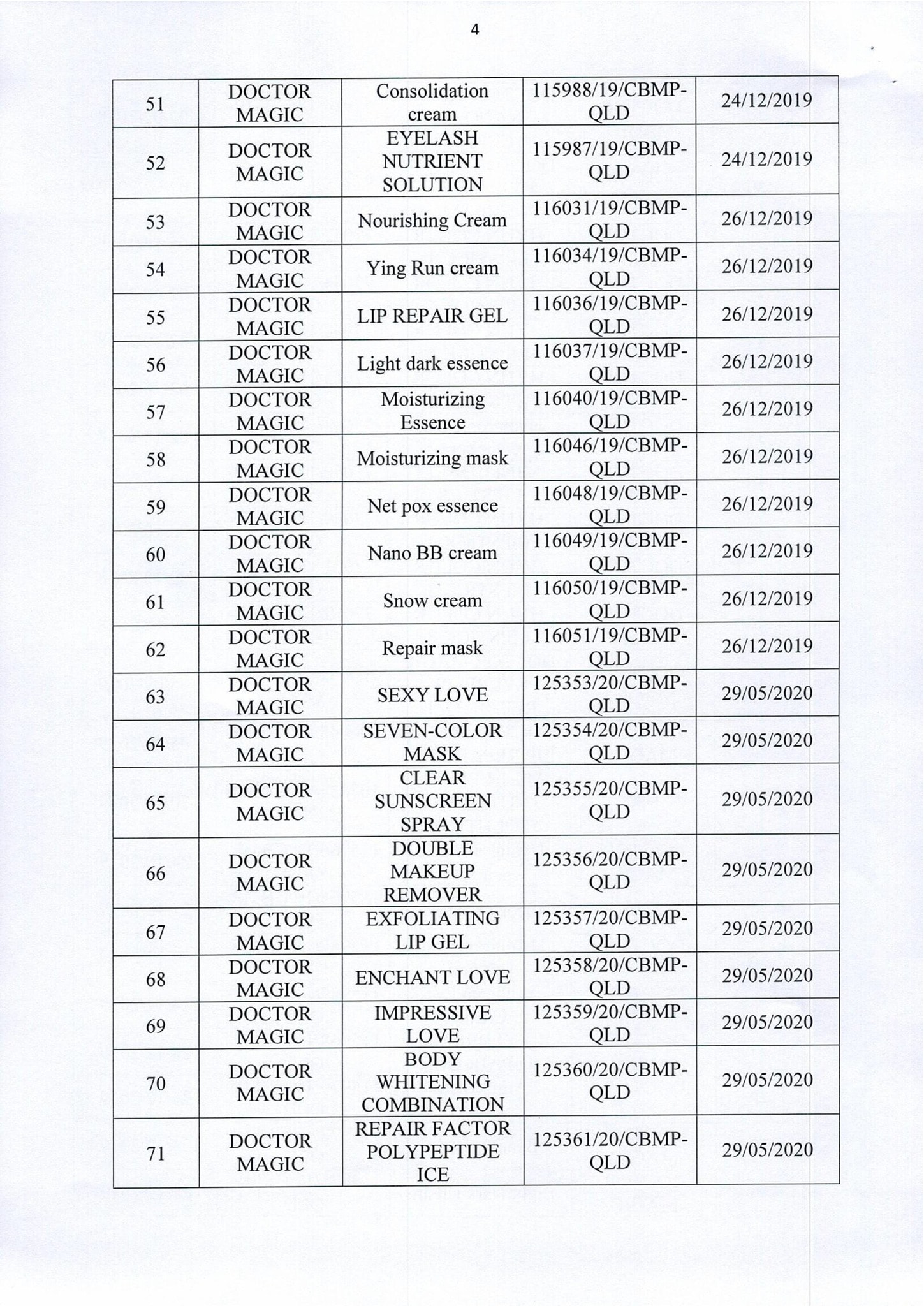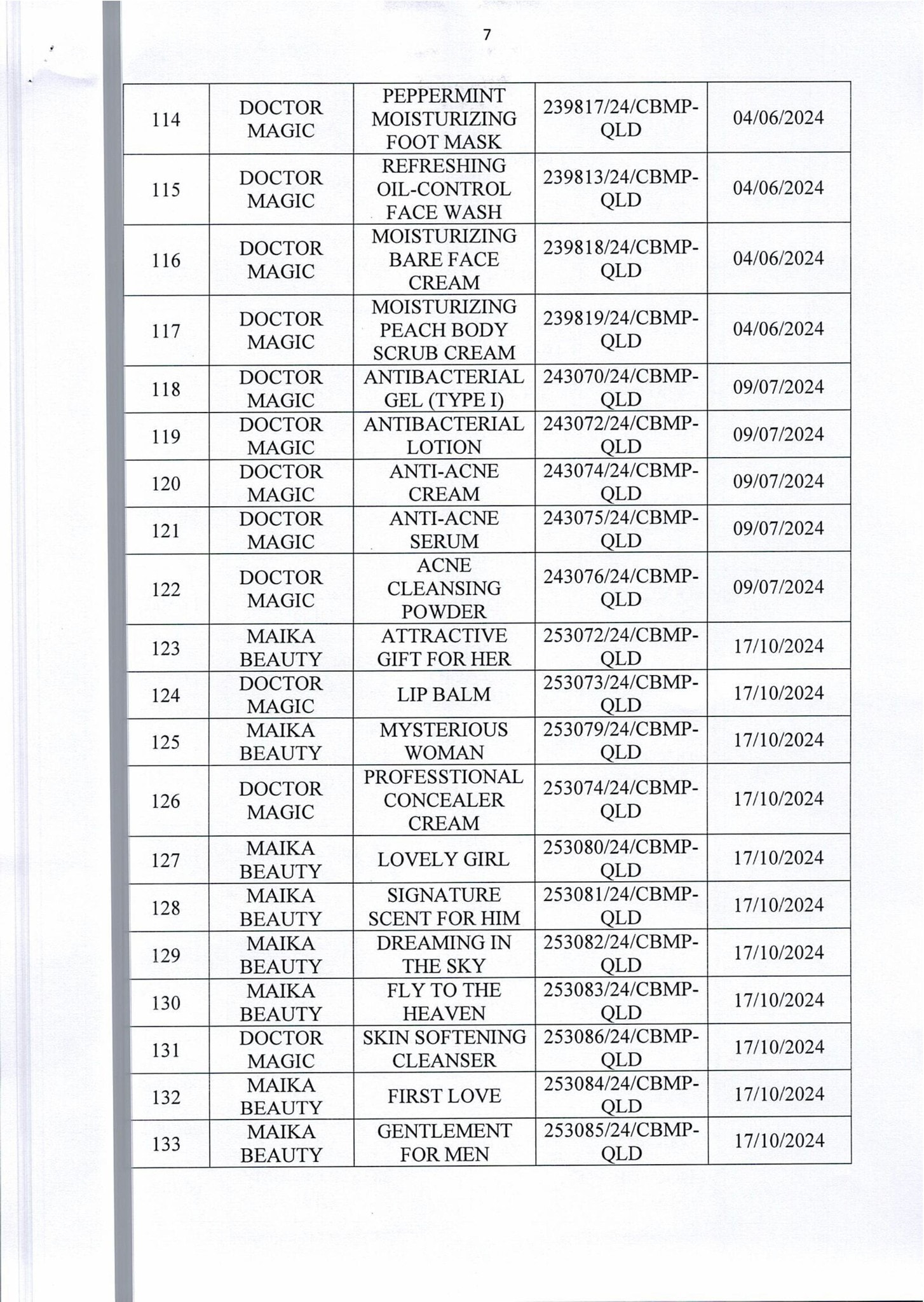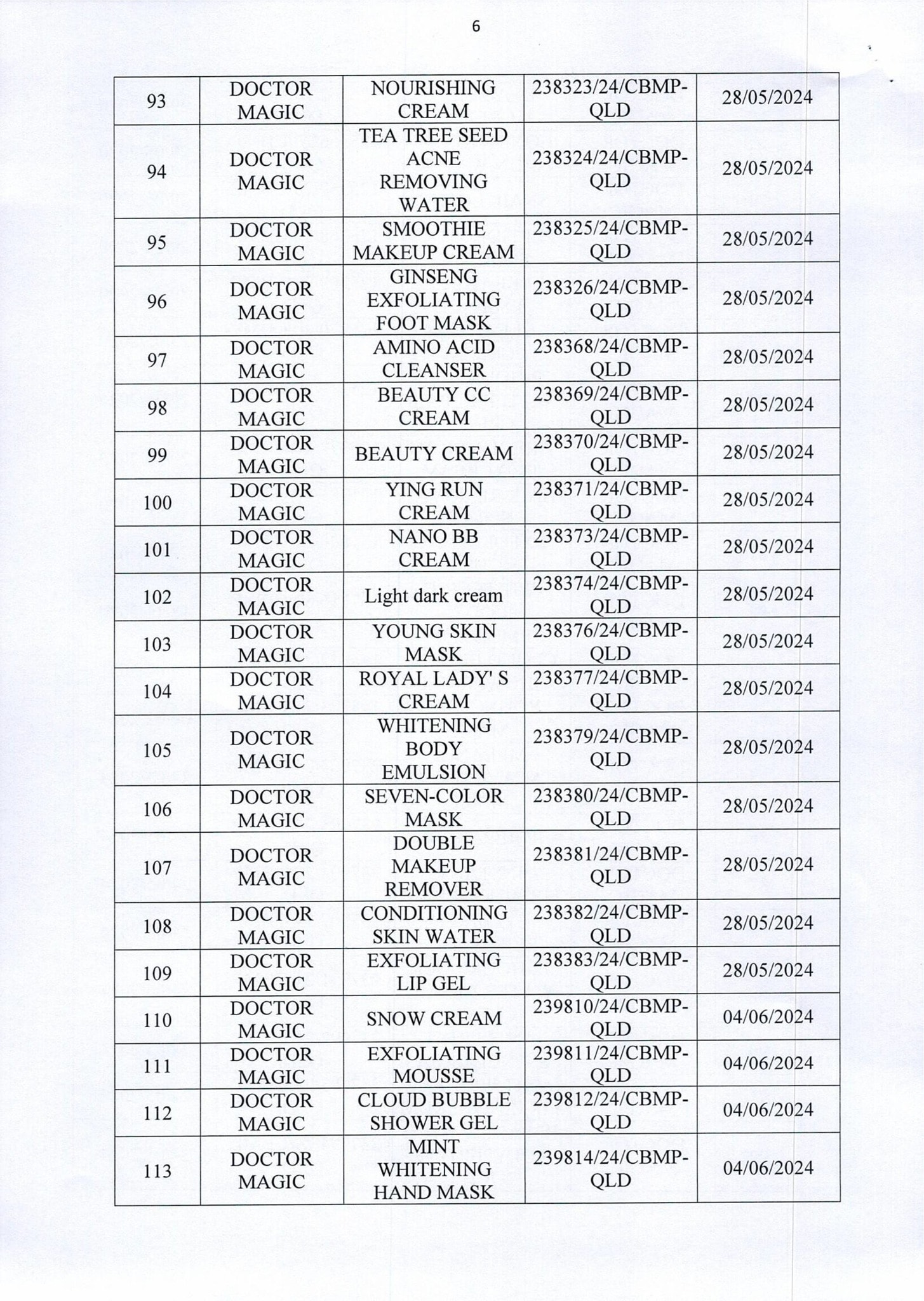 Dưới đây là danh sách 162 sản phẩm của Mailisa bị yêu cầu lấy mẫu kiểm tra chất lượng như sau: