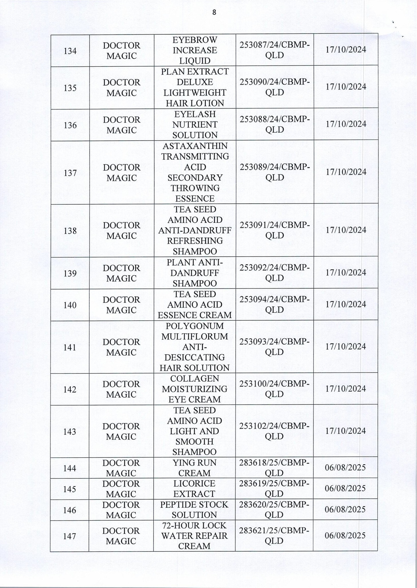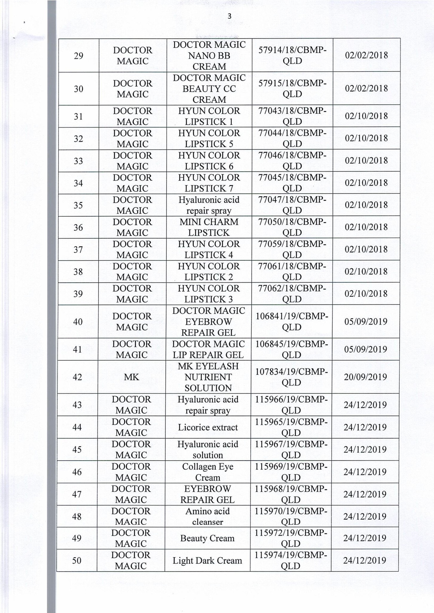 Cục Quản lý Dược đã gửi văn bản yêu cầu Trung tâm Kiểm nghiệm dược – mỹ phẩm lấy mẫu kiểm nghiệm toàn bộ các sản phẩm thuộc ba nhãn hàng trên đang lưu hành tại địa bàn.