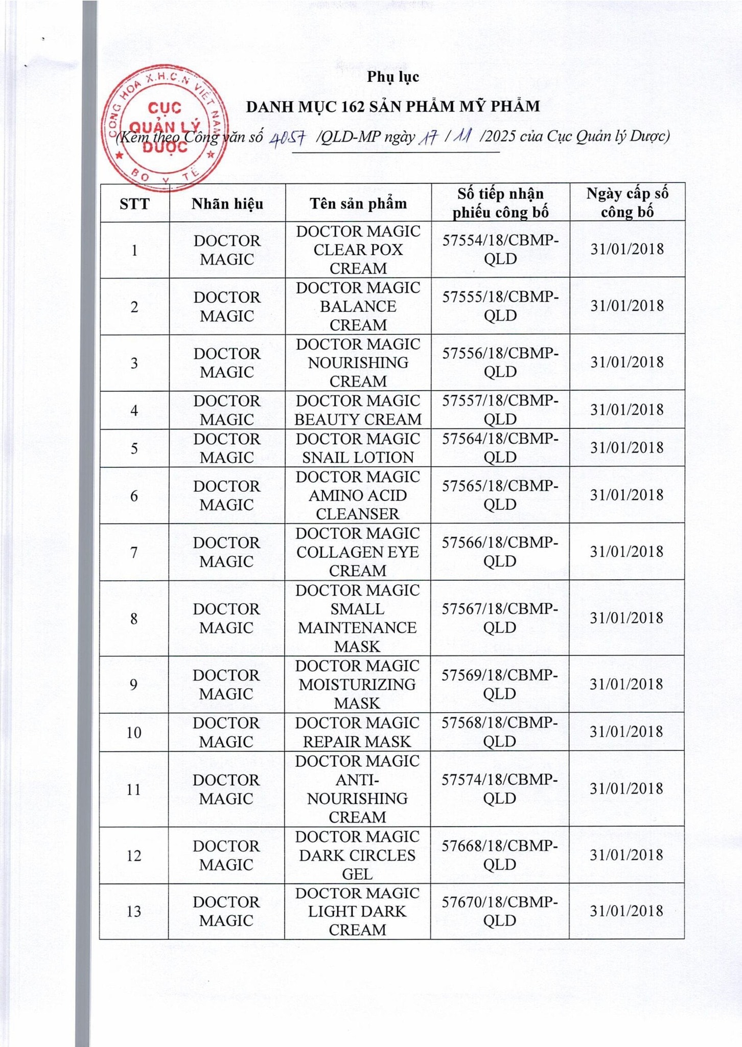 Danh mục kiểm tra gồm 162 sản phẩm do MK Skincare nhập khẩu hoặc chịu trách nhiệm phân phối. Các nhóm cần ưu tiên lấy mẫu là mỹ phẩm làm trắng da, kem chống nắng và sản phẩm có hướng dẫn sử dụng cho phụ nữ mang thai hoặc trẻ em.