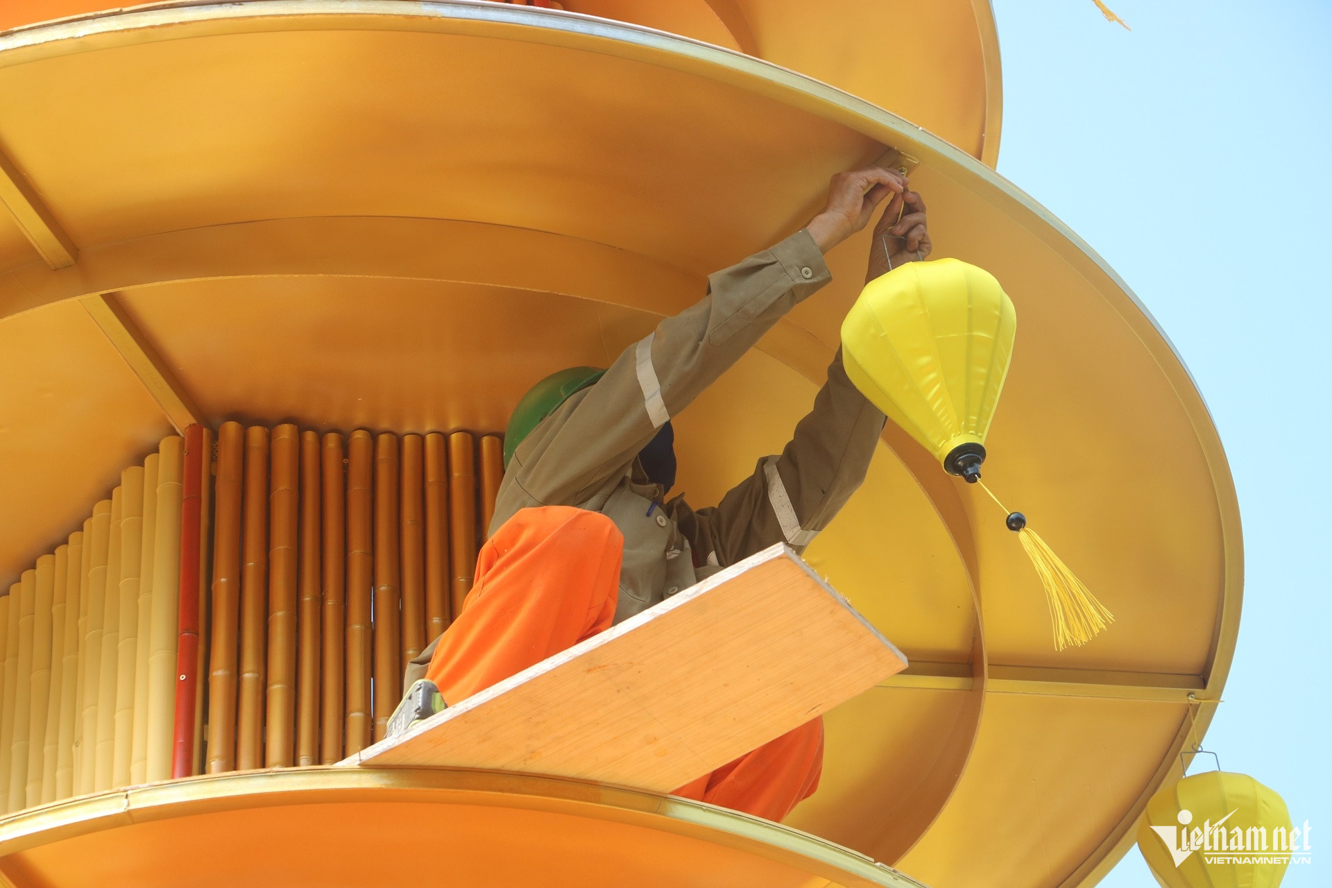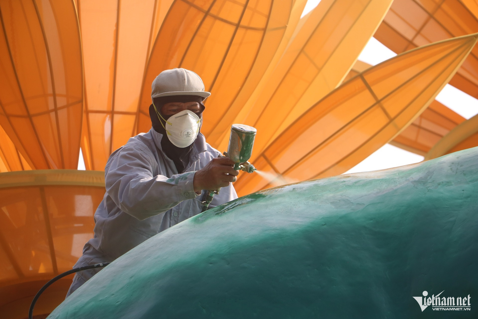 Theo ghi nhận của PV VietNamNet, phần khung các linh vật đã cơ bản được hoàn thiện, công nhân đang tiến hành phun sơn, tạo màu và hoàn chỉnh các chi tiết bề mặt. Các tiểu cảnh xung quanh cũng đang được lắp đặt.