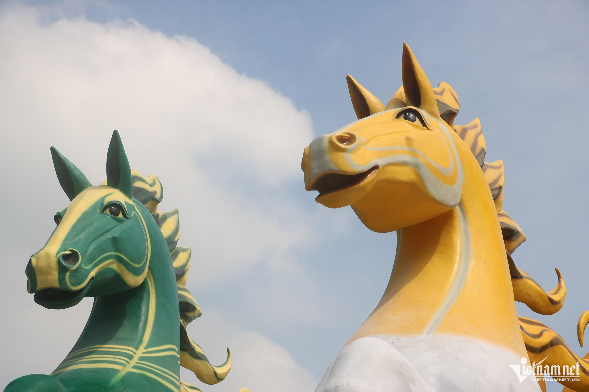 Đại diện đơn vị thi công cho biết, 3 linh vật với 3 gam màu khác nhau tượng trưng cho sự đa dạng nguồn lực và sự hội tụ sức mạnh. Tư thế ngựa vươn cao tạo cảm giác chuyển động liên tục, mang ý nghĩa “mã đáo thành công”.