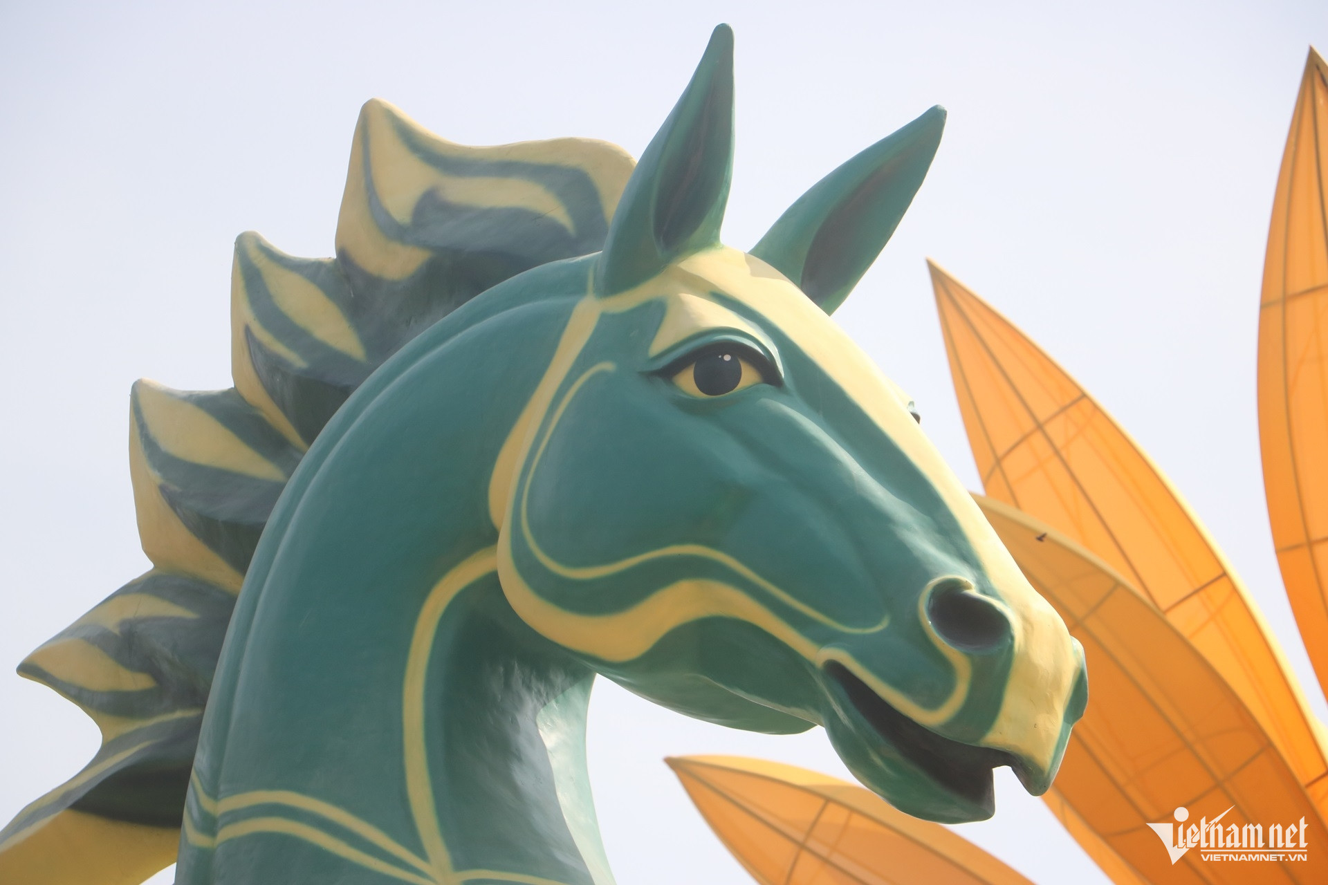 Cụm linh vật gồm 3 con ngựa có chiều cao khoảng 8m, dài 10m, được thiết kế trong tư thế phi nước đại hướng ra biển. Các linh vật mang họa tiết đa sắc xanh, đỏ, vàng, nổi bật giữa không gian trung tâm công viên.