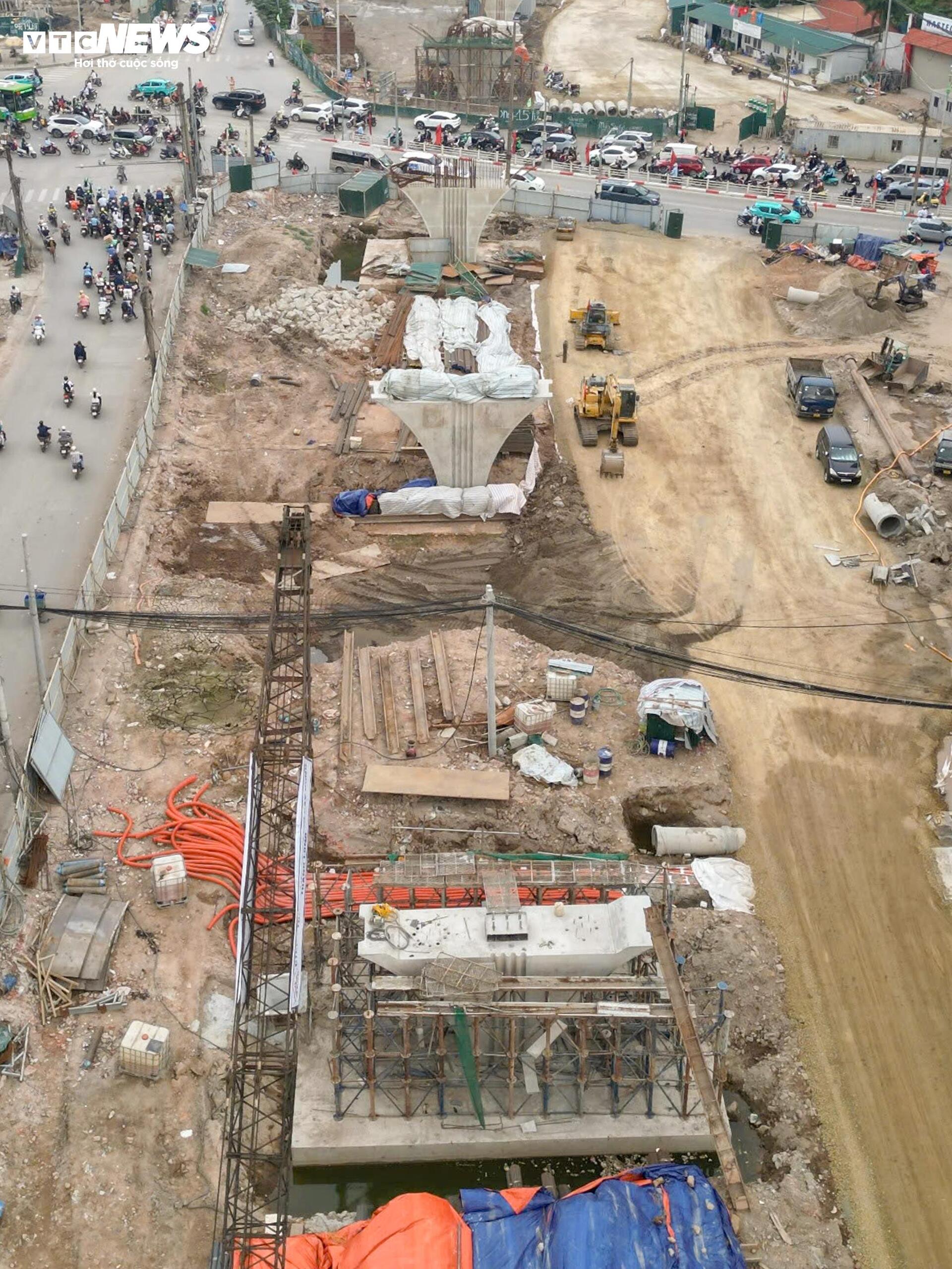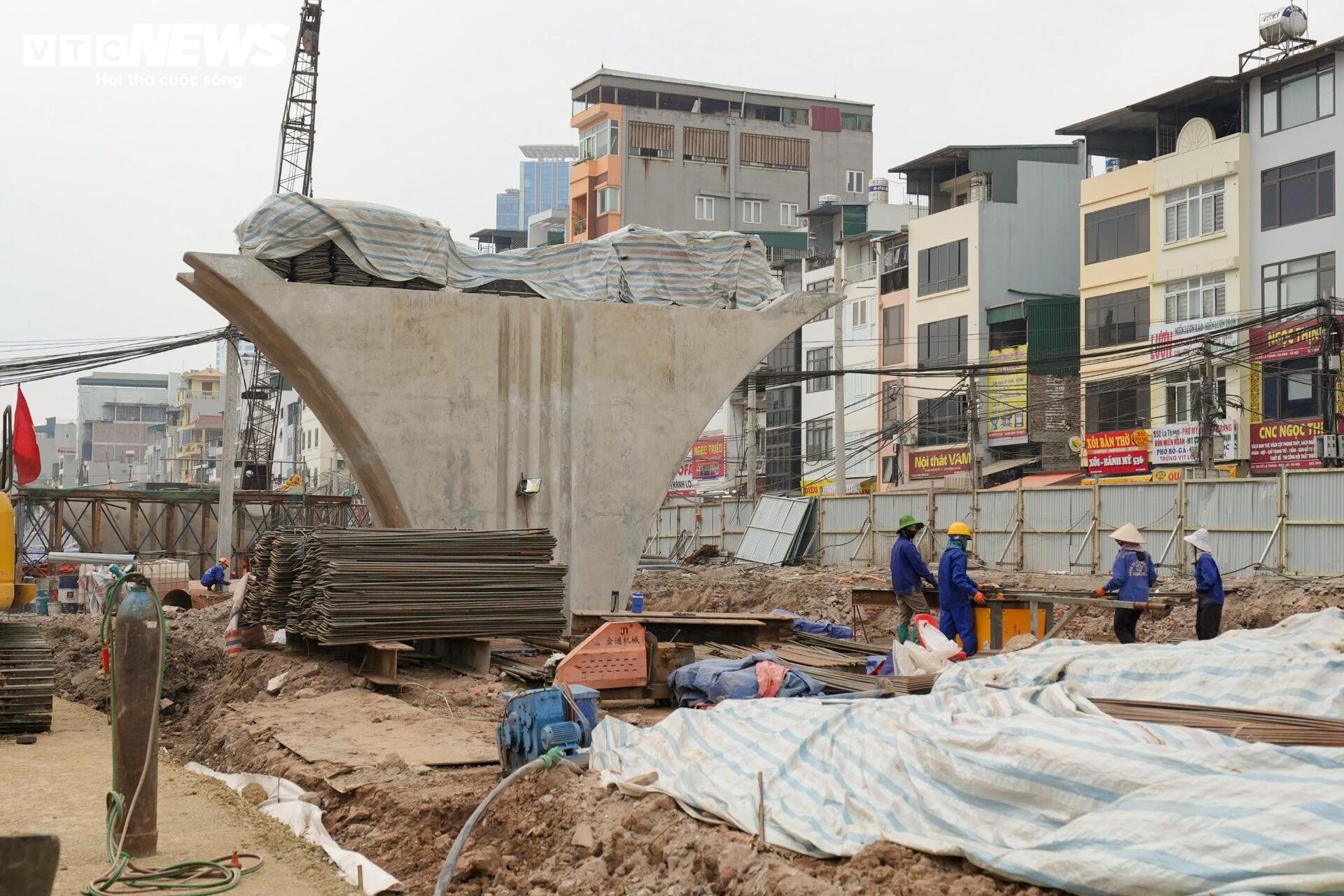 Trong khi đó, tại nút giao Nguyễn Chí Thanh, công trình đạt khoảng 20% khối lượng. Các trụ chính đang được thi công, dự kiến từ tháng 6 sẽ bước sang giai đoạn làm nhịp cầu.