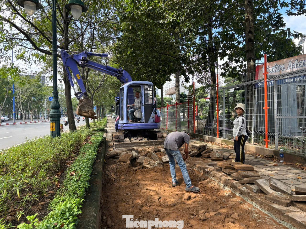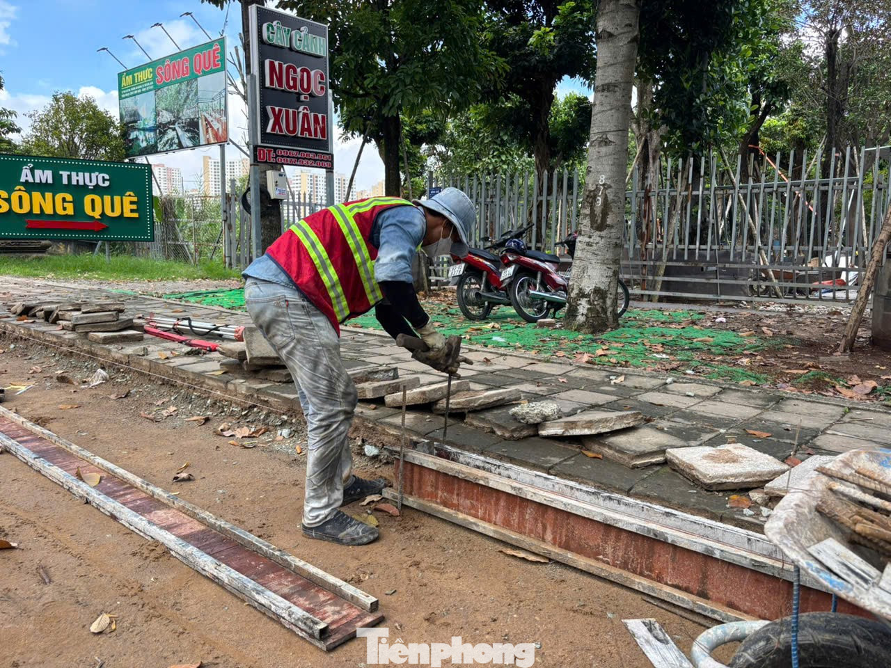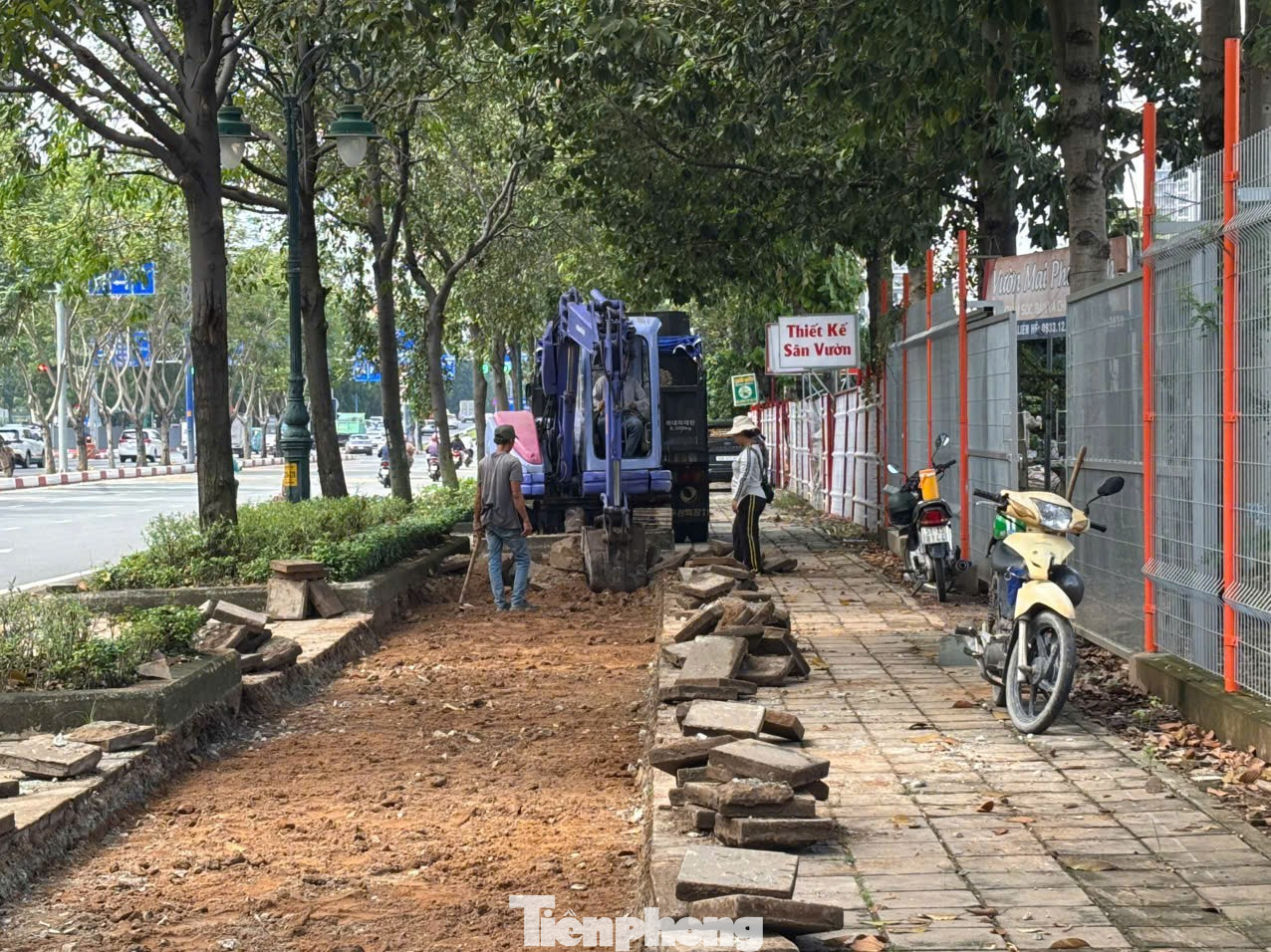 Các đoạn vỉa hè đang được bóc dỡ gạch để chuẩn bị mặt mặt bằng thi công.