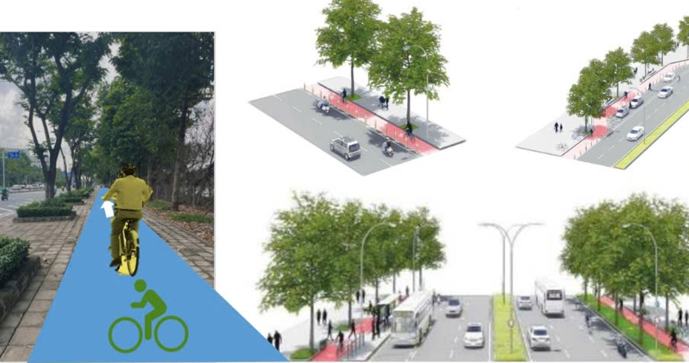 Làn đường dành cho xe đạp được bố trí song song với vỉa hè, tách biệt rõ rệt với phần đường dành cho ô tô, xe máy nhằm bảo đảm an toàn cho người lưu thông.