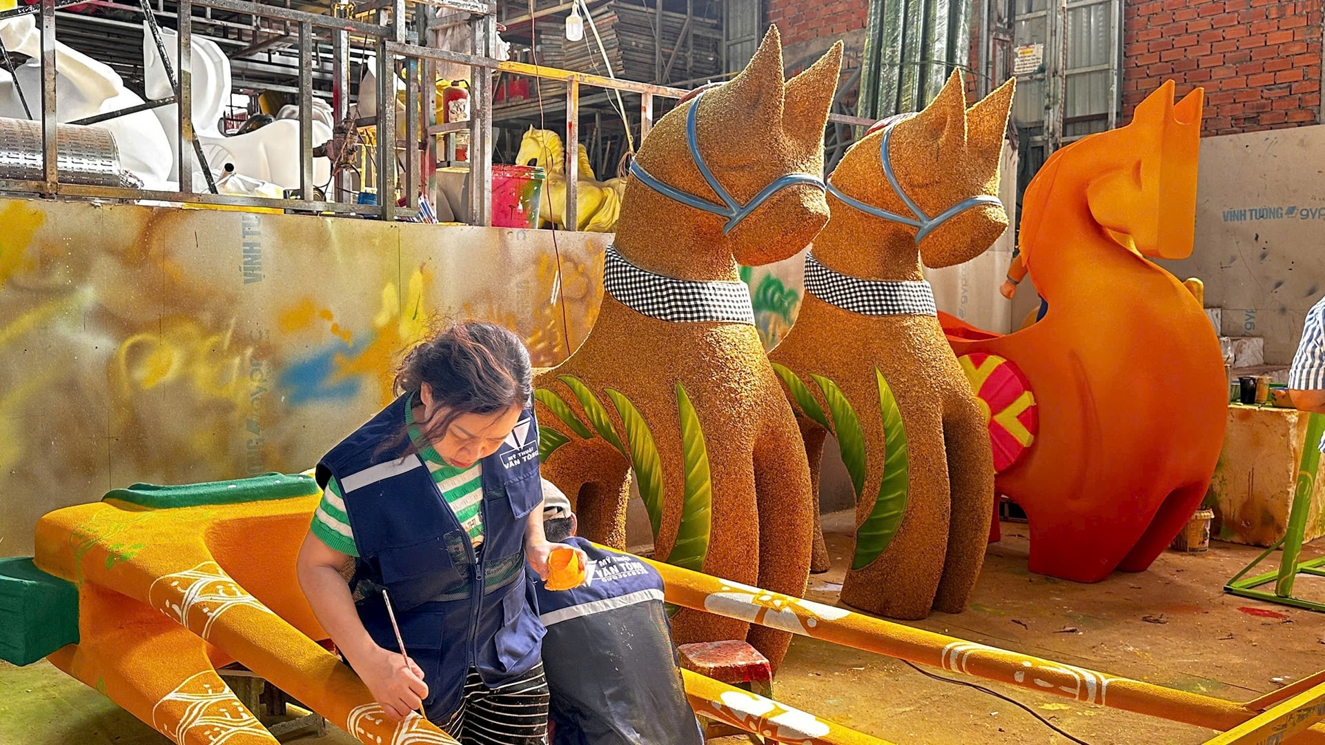 Để thực hiện phần cơ động, sau khi hoàn tất khâu điêu khắc, linh vật được cắt thành từng module nhằm lắp đặt hệ thống máy móc bên trong. Các bộ phận này sẽ được ráp hoàn chỉnh tại hiện trường, bảo đảm vừa an toàn kết cấu vừa đạt hiệu quả thẩm mỹ cao. Toàn bộ quá trình từ điêu khắc, nghiên cứu cơ khí đến lập trình chuyển động đã được triển khai liên tục trong khoảng hai tháng.