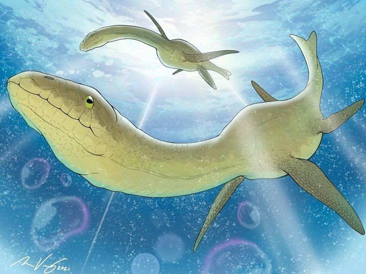 Không phải là khủng long. Dù sống cùng thời, Plesiosaurus thuộc nhóm bò sát biển, khác hoàn toàn với khủng long trên cạn. Ảnh: Pinterest.
