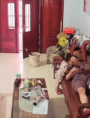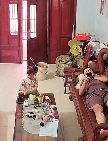 Theo đó, bé gái này chơi cùng bố ở phòng khách. Trong lúc bố xem điện thoại, bé gái cũng tự tìm trò chơi cho mình. Tuy nhiên, không may bé gái đã làm rơi chiếc bát khiến chiếc bát này vỡ toang.