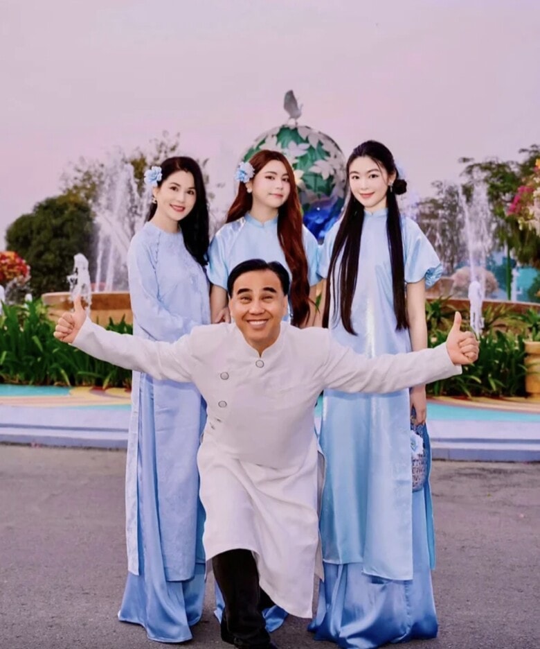 MC Quyền Linh bên vợ và 2 con gái xinh đẹp.