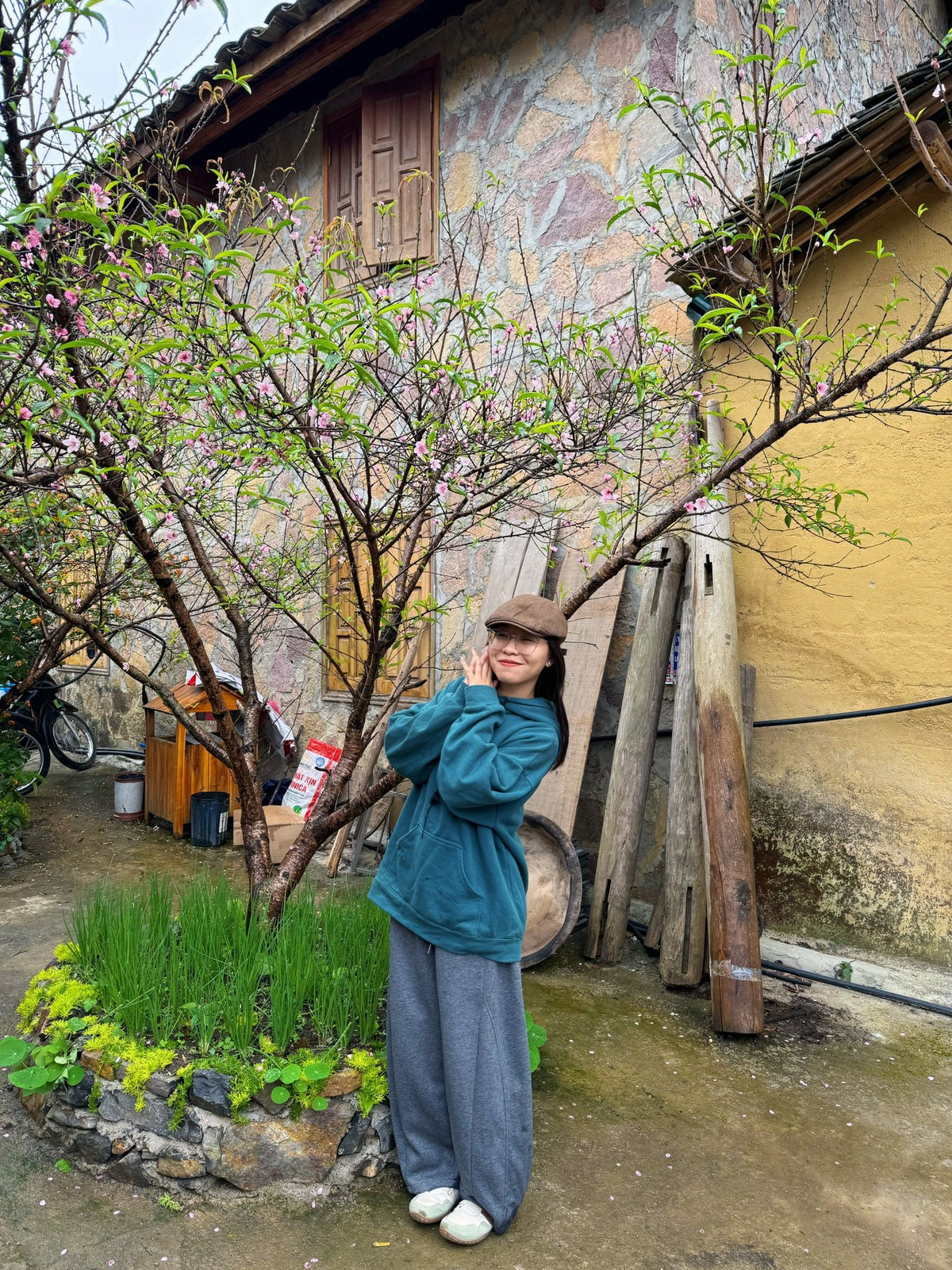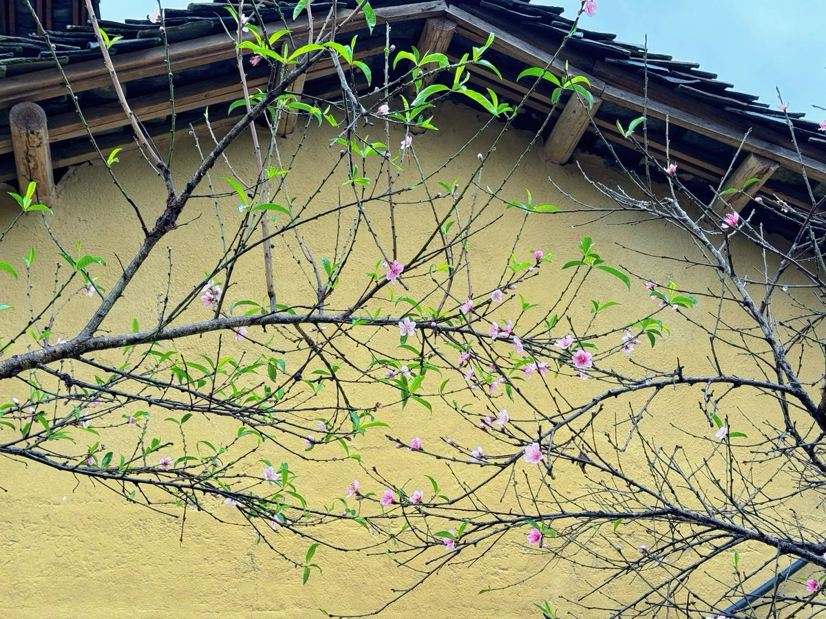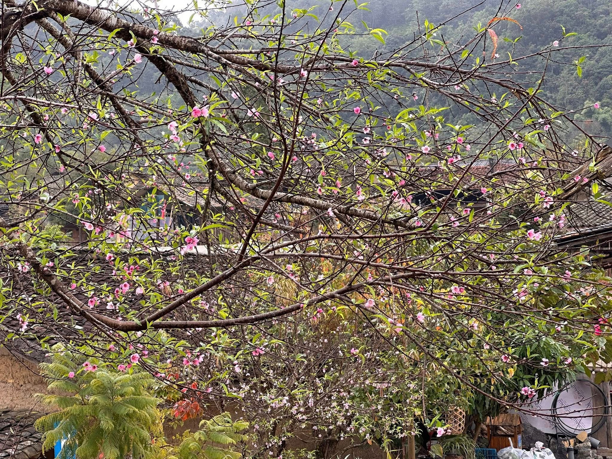 Đầu tháng 11, khi cao nguyên đá Đồng Văn (Tuyên Quang) mới bước vào mùa tam giác mạch, thì tại làng Lô Lô Chải – Làng du lịch tốt nhất thế giới 2025, những cánh hoa đào đã bất ngờ bung nở. Ảnh Hà Giang Tour