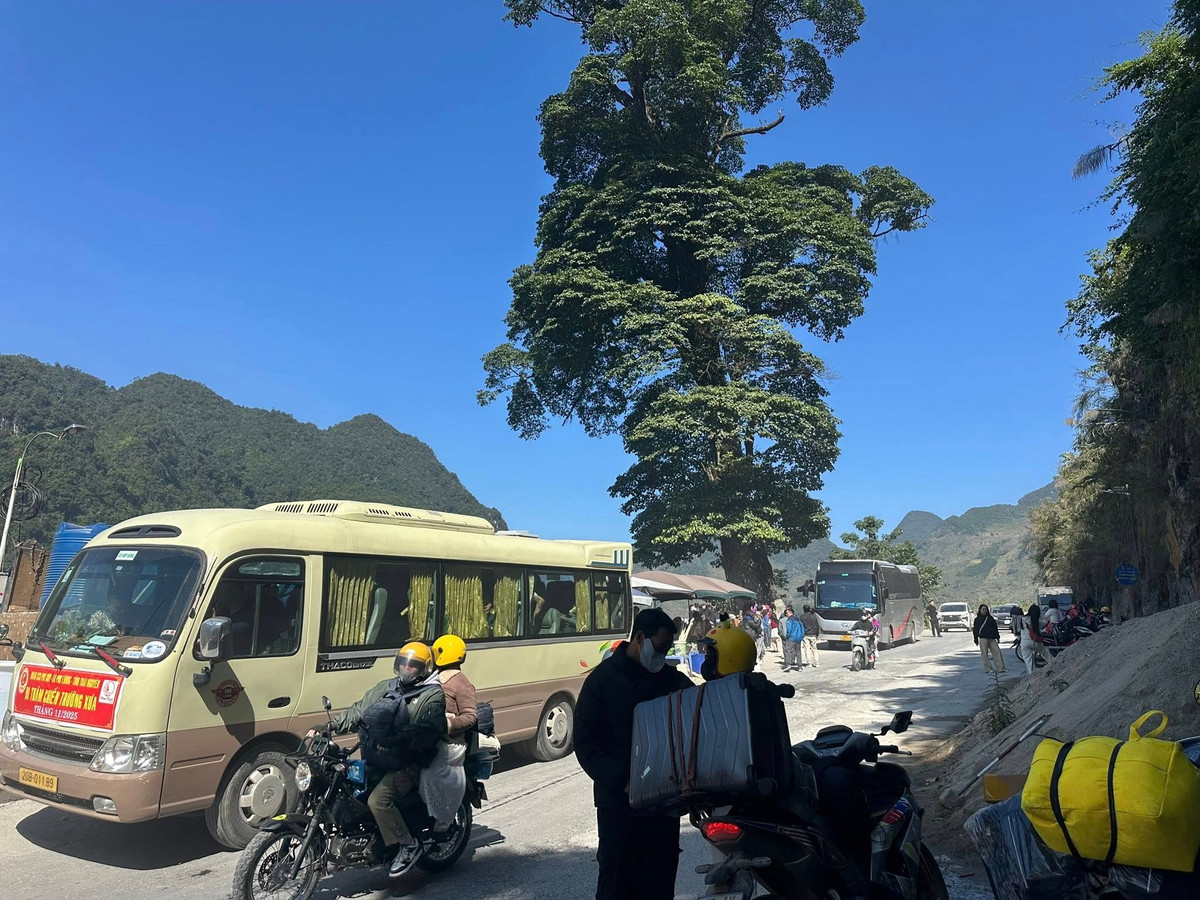 Ghi nhận tại bản Lô Lô Chải, từ sáng sớm, con dốc Thẩm Mã đã kẹt cứng xe cộ. Nhiều tài xế phải tắt máy chờ nhích từng chút, trong khi các đoàn xe máy nép sát hai bên đường đợi lưu thông thông thoáng.