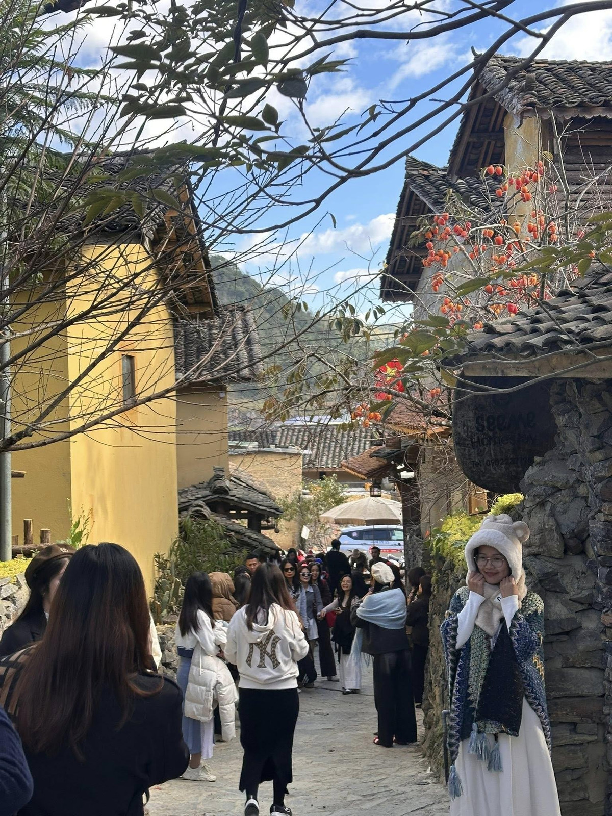 Background được săn đón nhiều nhất là cây hồng nổi bật giữa làng – điểm check-in không thể bỏ qua của bất cứ ai đến đây. Ảnh Hà Giang Tour
