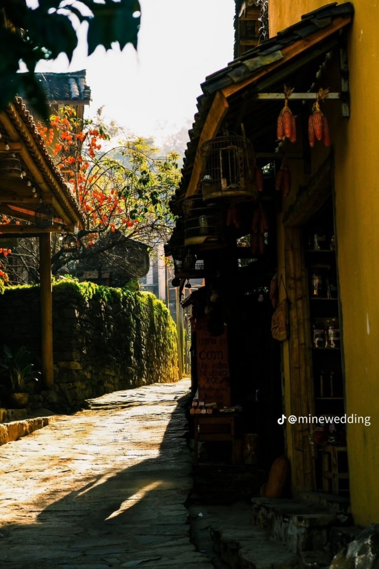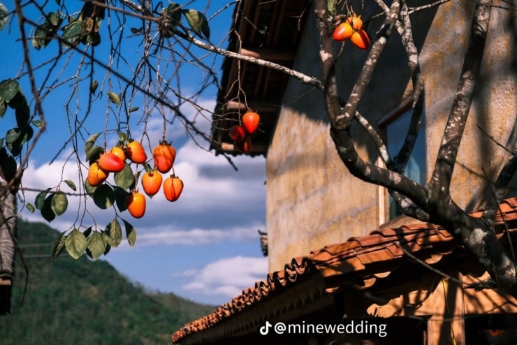 Cây hồng này thuộc khuôn viên của điểm lưu trú SEEME, được chị Linh, chủ homestay, mang về trồng từ năm 2023. Chị Linh chia sẻ, ban đầu chị chỉ muốn trồng thêm các loại cây bản địa như đào, mận, lê và hồng để làm đẹp cho không gian, tạo dấu ấn riêng. Chị đã cố tình đặt cây hồng sát hàng rào đá, hình dung về một khung cảnh thơ mộng khi quả chín đỏ nổi bật trên nền tường rêu phong.