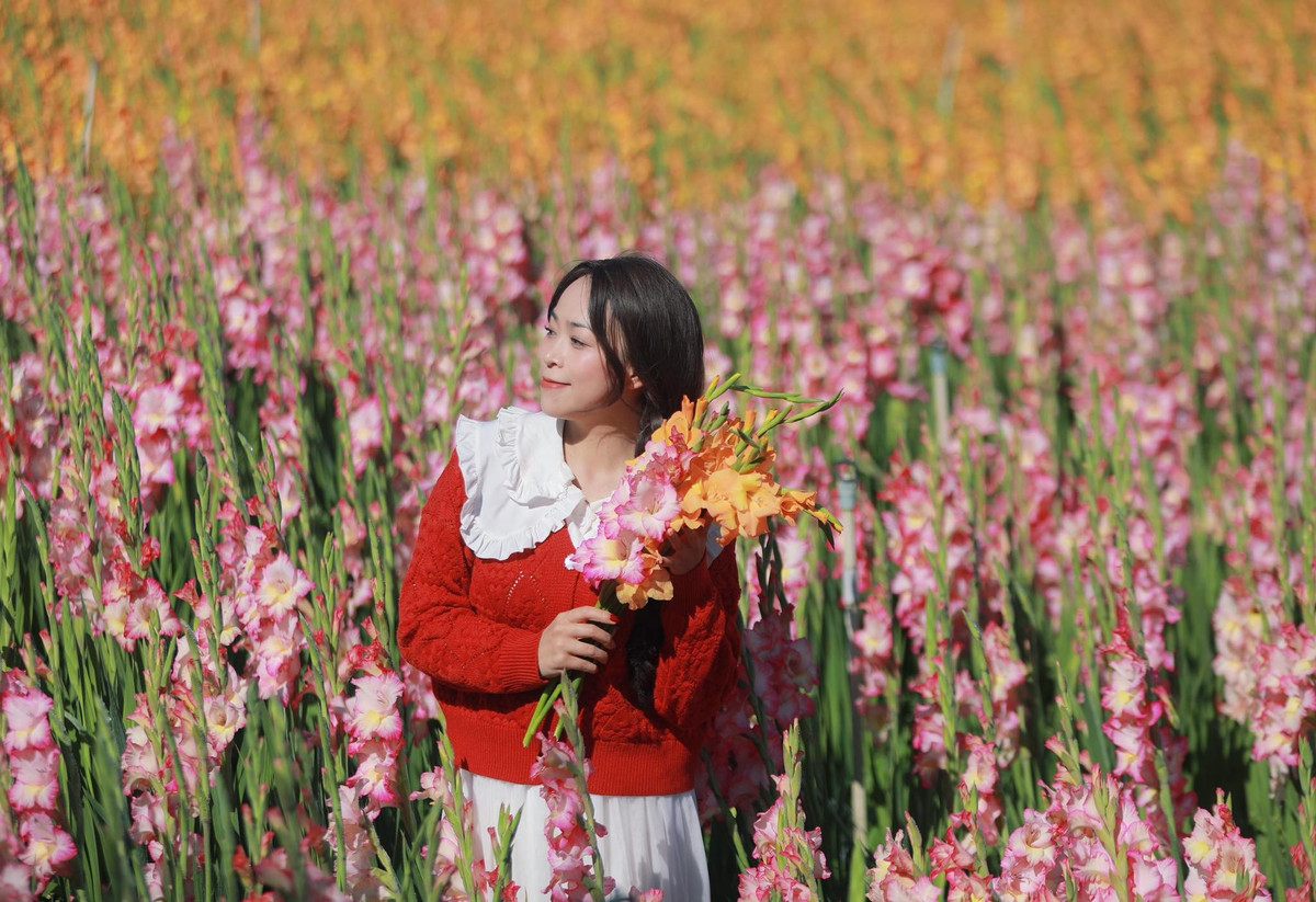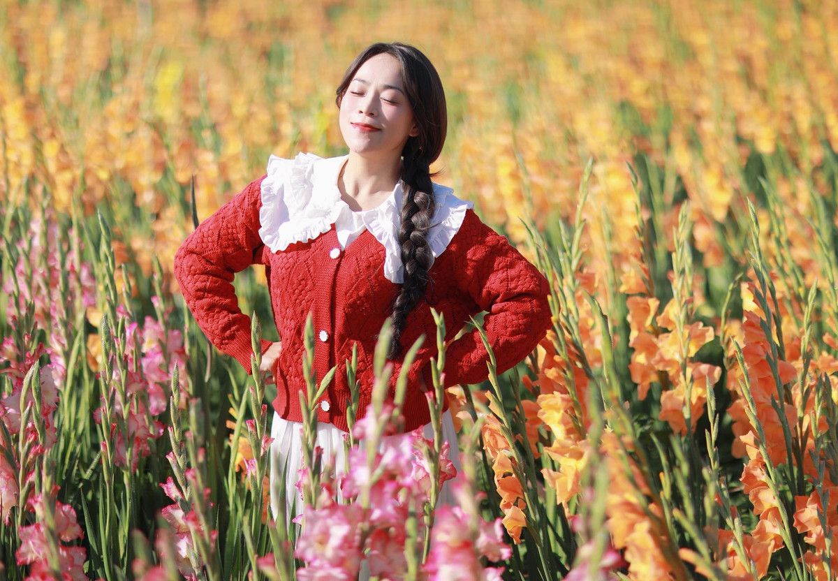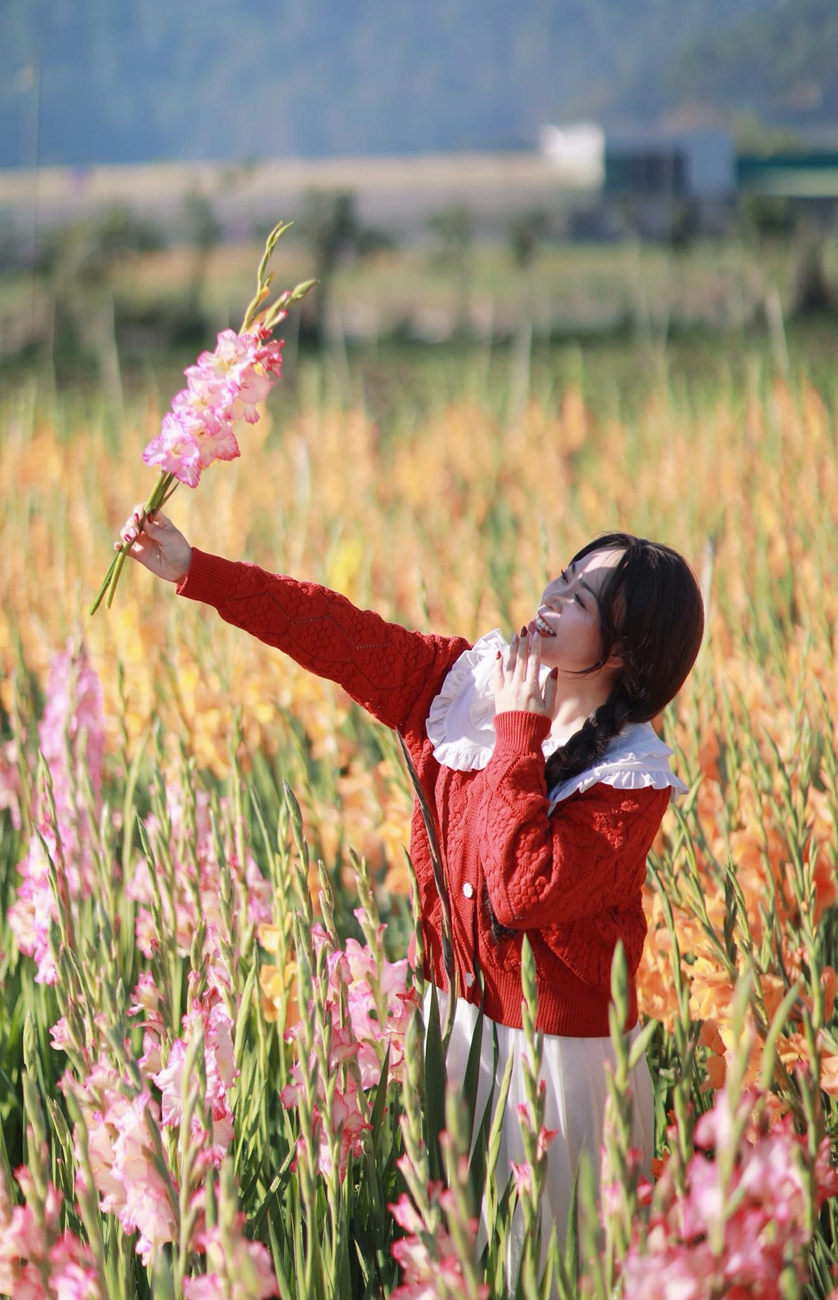 Chính sự “lỡ hẹn” mùa Tết ấy lại vô tình tạo nên một khung cảnh hiếm có. Hàng ngàn bông lay ơn nở đồng loạt, vươn cao ngang người, xếp thành từng luống thẳng tắp trải dài bất tận. Dưới nắng Đà Lạt trong veo, những lớp hoa nhiều màu đan xen tạo thành tấm thảm rực rỡ, khiến bất cứ ai đặt chân tới cũng khó rời mắt.
